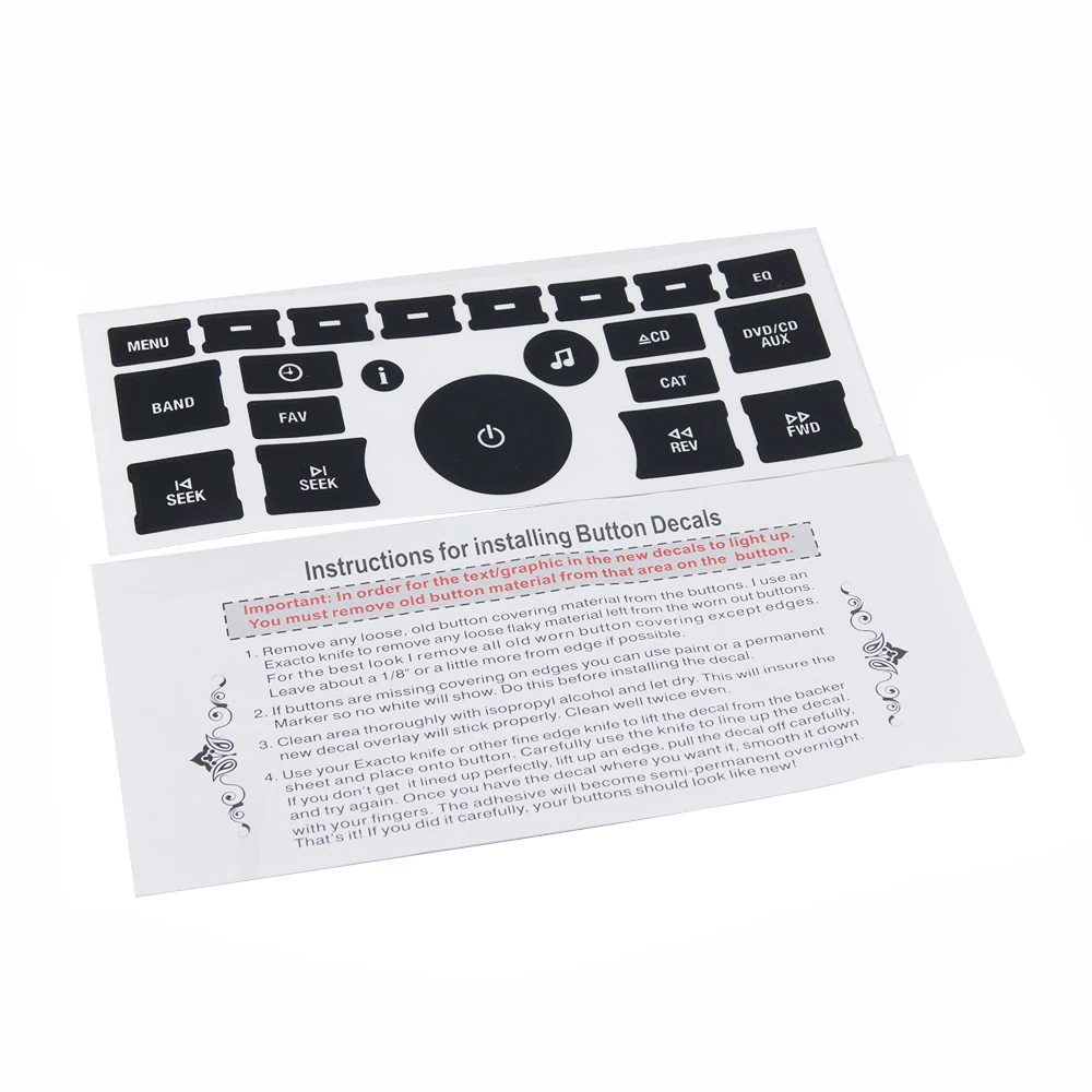 Эти наклейки идеально обрезаны и соответствуют оригинальным фигурам и значкам радиокнопок. Экономьте деньги и сделайте ваш автомобиль новым.