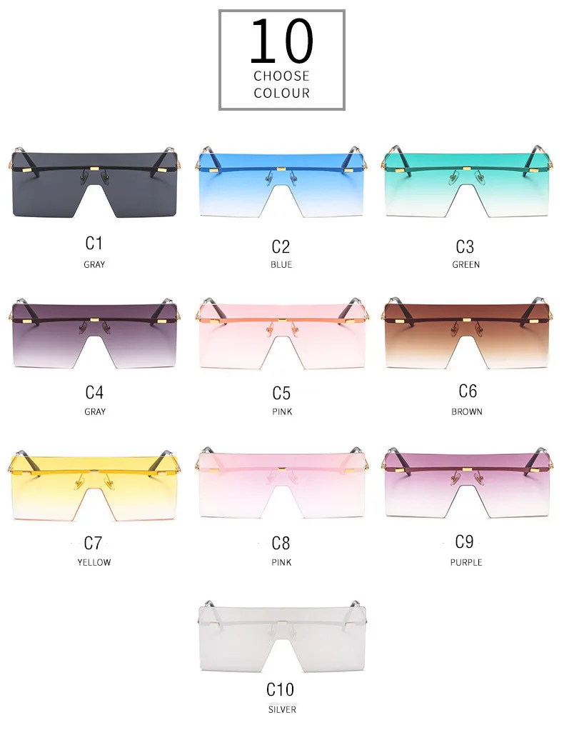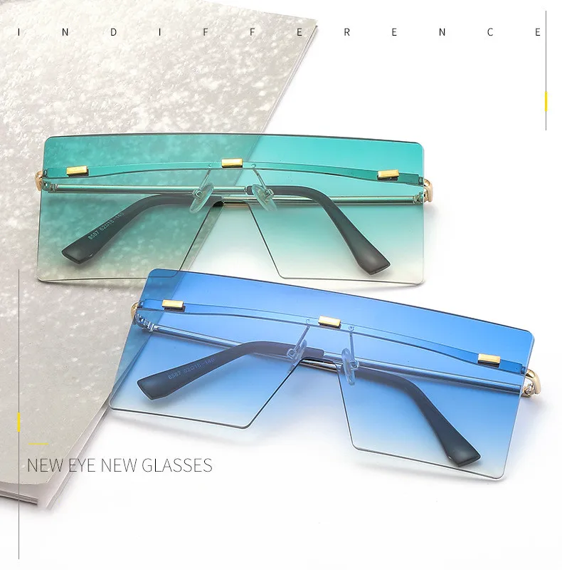 NAUQ модные трендовые бескаркасные цельные солнцезащитные очки для женщин и мужчин градиентные линзы для океана солнцезащитные очки ретро квадратные очки с большой оправой