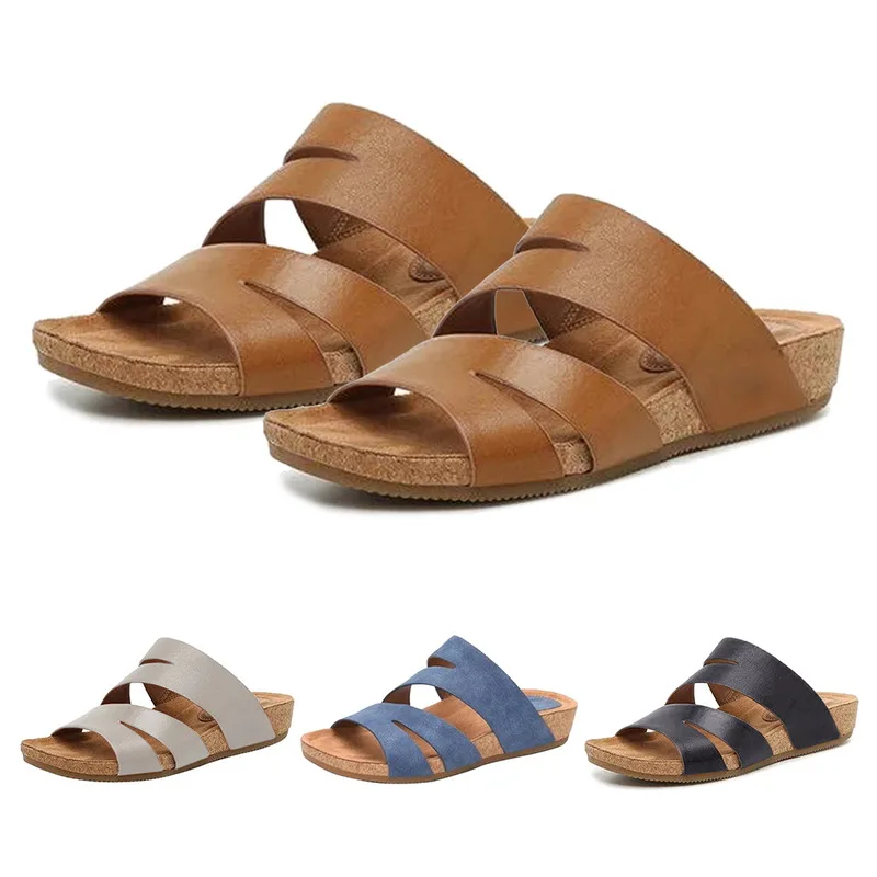 Сандалии с ремешками на платформе, плоские повседневные пробковые сандалии с скользящей подошвой для женщин/девушек внутри/на улице