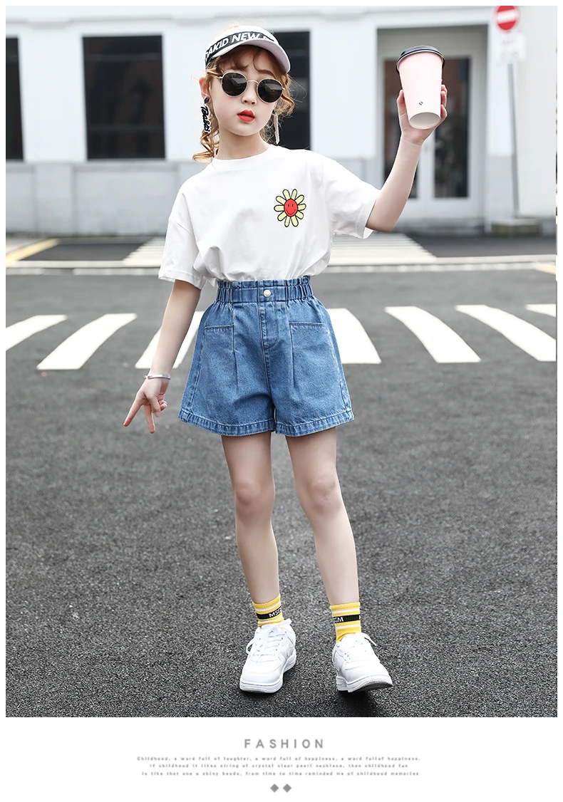2020 летние джинсовые шорты с высокой талией для девочек, детская одежда для подростков, мягкие короткие джинсы для девочек 4, 5, 7, 9, 11, 10, 12, 13 лет