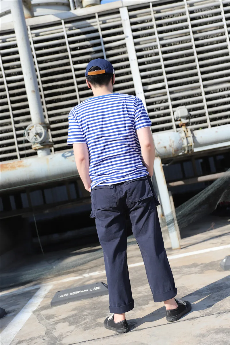 Футболка в полоску моряка происходит от военно-морской эскадрильи советской патриотической войны во время Второй мировой войны. Он представляет собой огромный океан и голубое небо. Причина, по которой темно-синяя рубашка в полоску была впервые оснащена, заключается в том, что футболка имеет практичную функцию. Когда моряк случайно падает в море с палубы, они могут быть быстро обнаружены. Также говорят, что оптический эффект, создаваемый горизонтальными полосами, может создавать иллюзию большего количества солдат, чем реальных.
