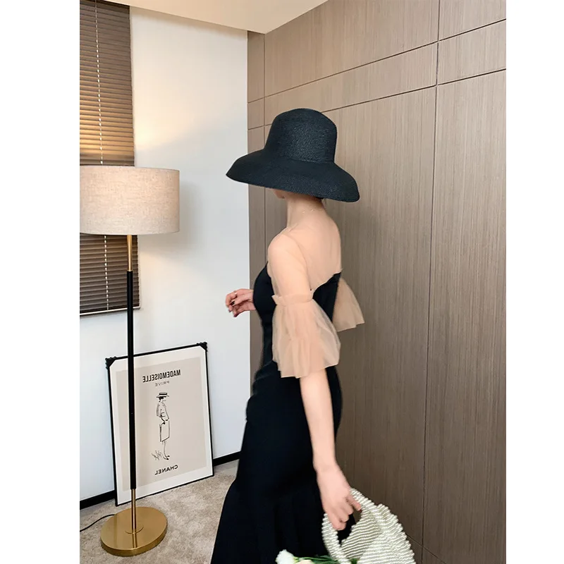 Женское платье в клетку с круглым вырезом и коротким рукавом|Женские платья| |