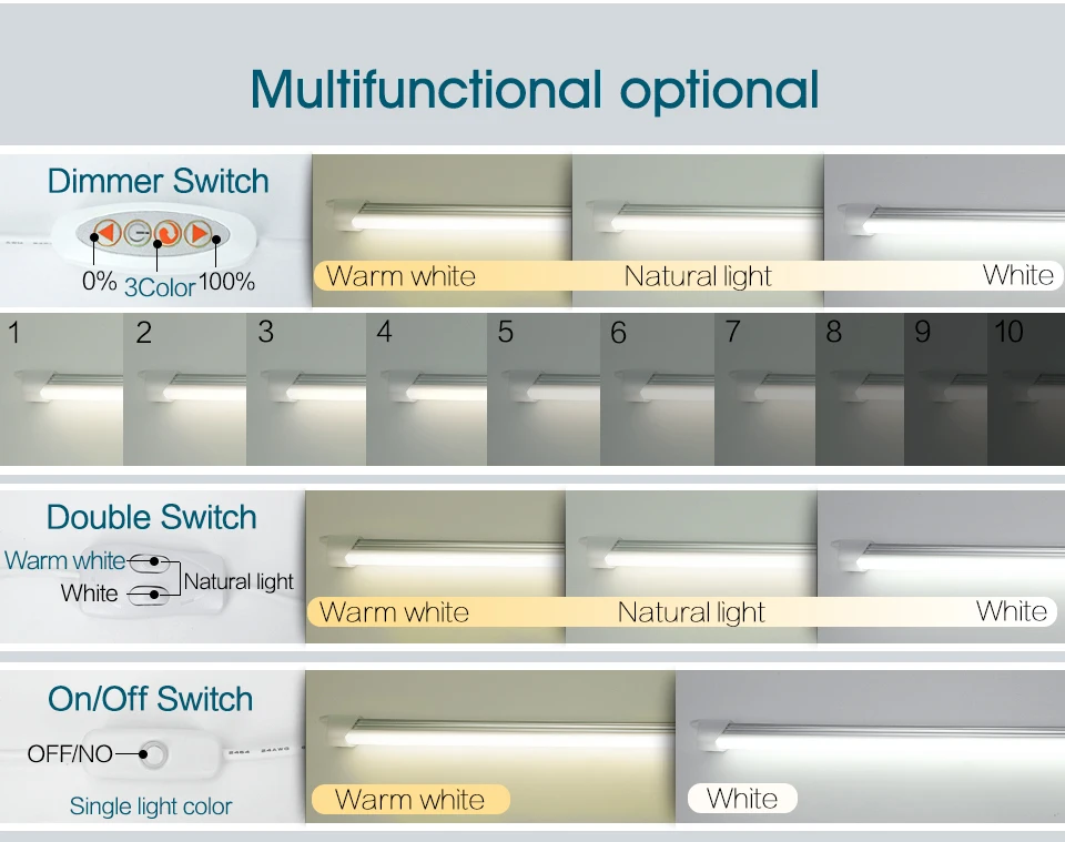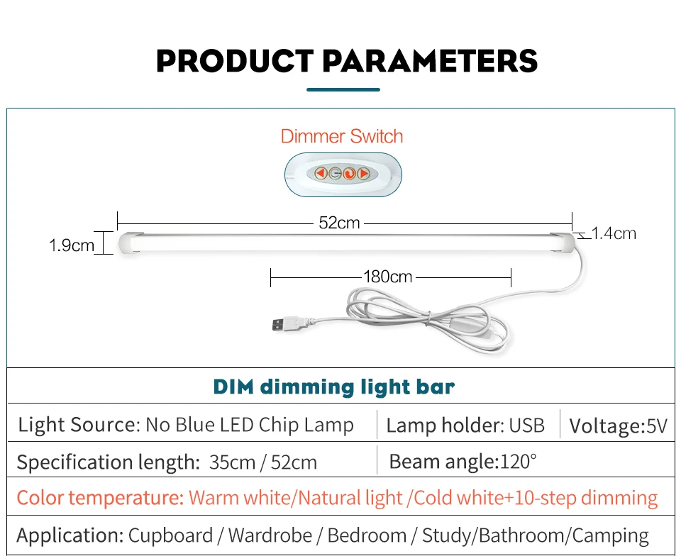Напряжение: 5 в пост. Тока Режим подключения: USB Тип переключателя: 501/двойной переключатель/диммер Трубка Длина: 18/35/52 см Провод Длина: 1,8 м Угол луча: 120 °