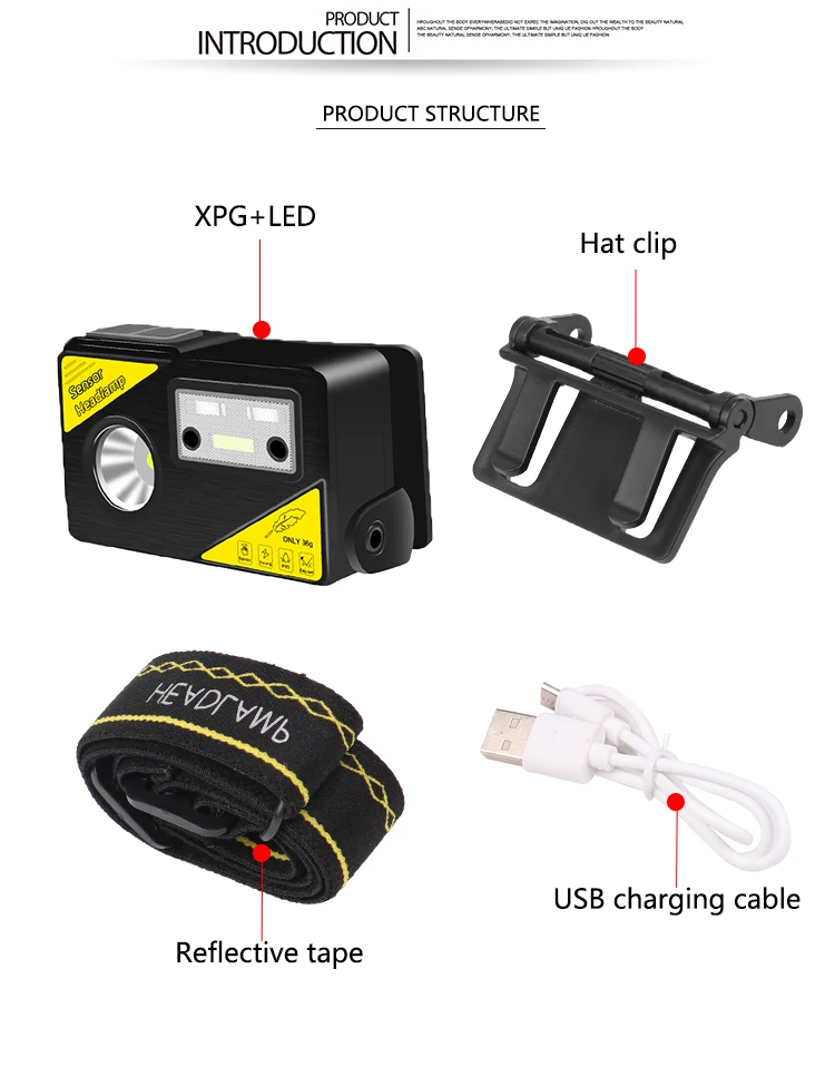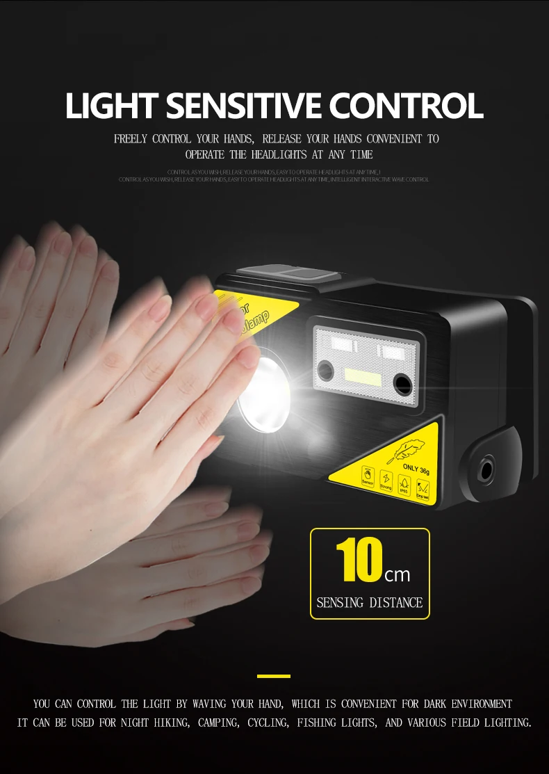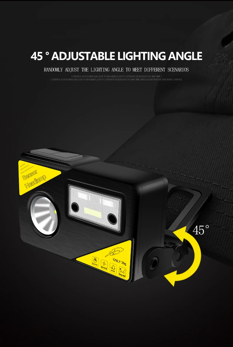 ✅Головная лампа с датчиком движения: Когда вы заняты, вы просто махнете рукой перед лампой, чтобы выключить ее или включить. Больше режимов удовлетворят ваши потребности в различных условиях.
