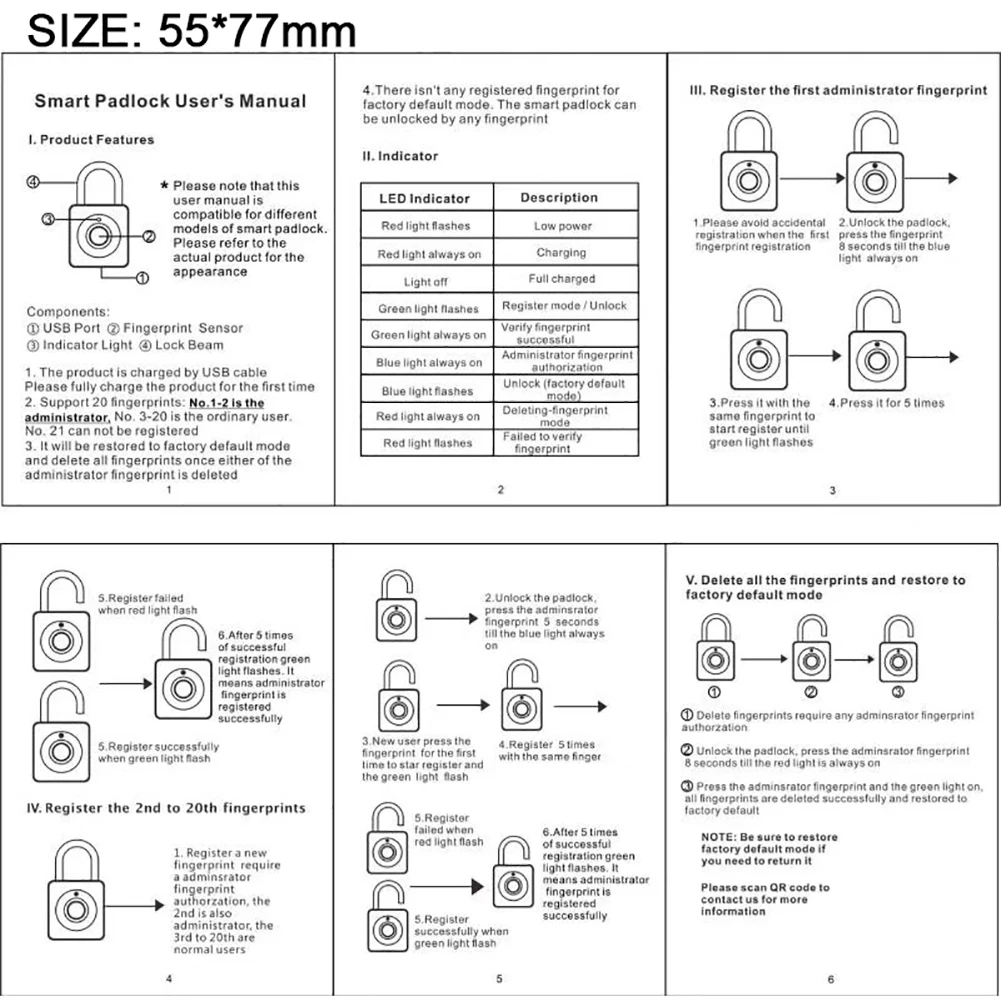 -Нет необходимости в каких-либо инструментах, вы можете легко добавлять или удалять отпечатки пальцев, следуя инструкциям руководства пользователя.
