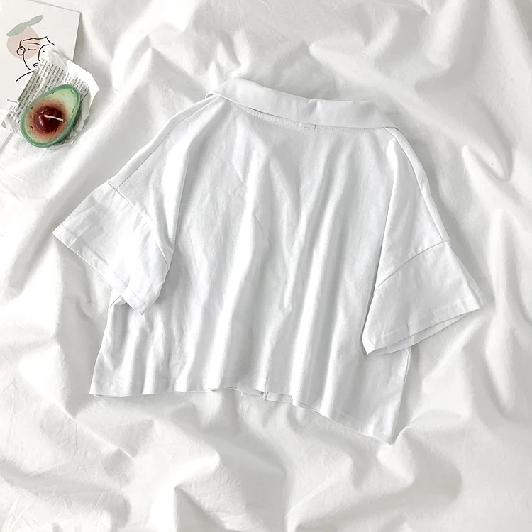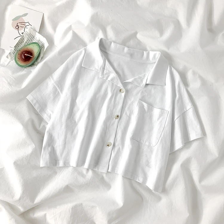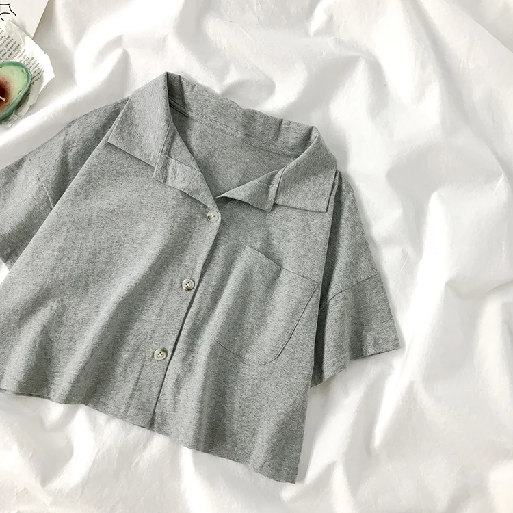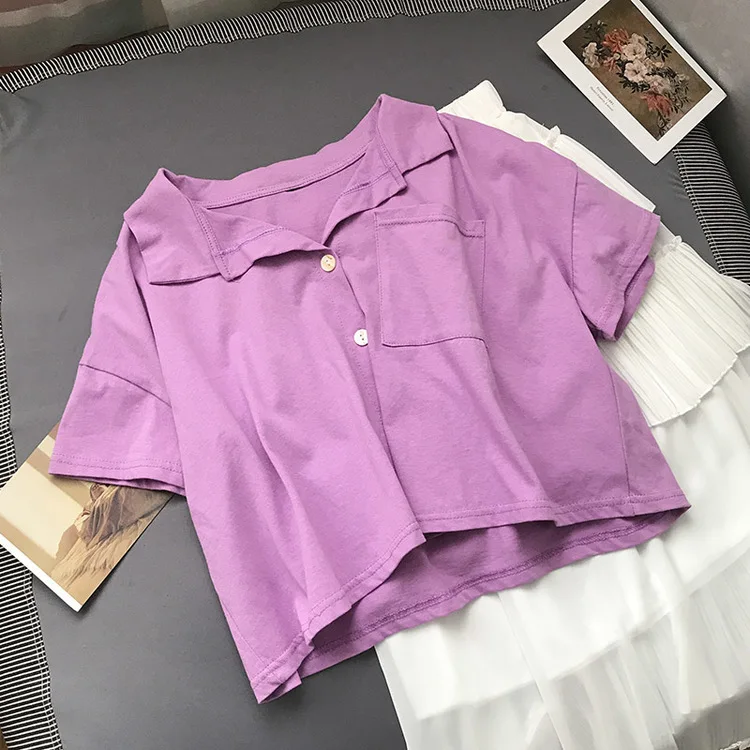 Женская трикотажная Укороченная рубашка-поло Pearl Diary, короткий топ на пуговицах спереди, летняя Уличная Повседневная рубашка-поло с карманом размера плюс