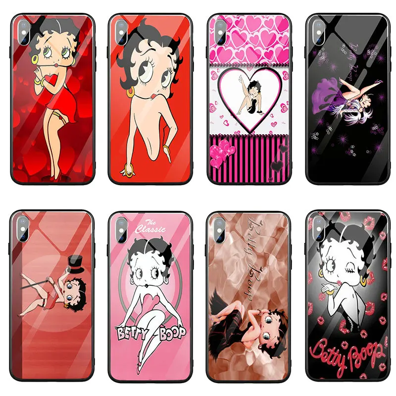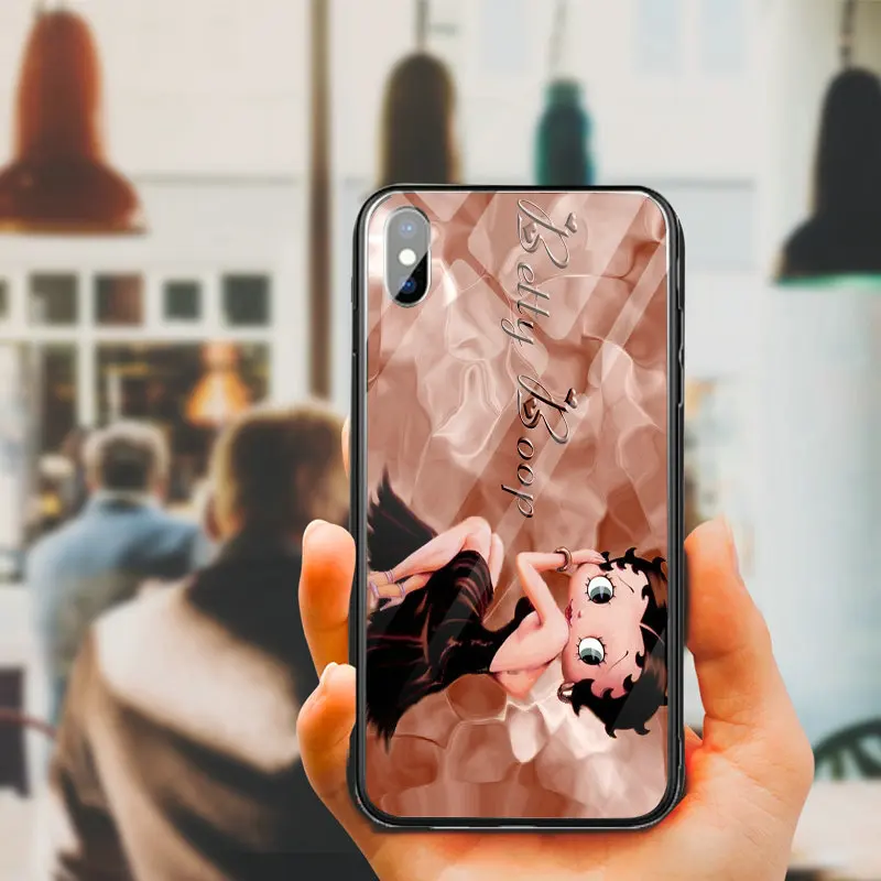 Мобильный телефон из закаленного стекла, чехлы для iPhone 8 7 6 5 5S SE 2020 6S Plus X XR XS 11 Pro Max 10 Betty Boop, милая девушка