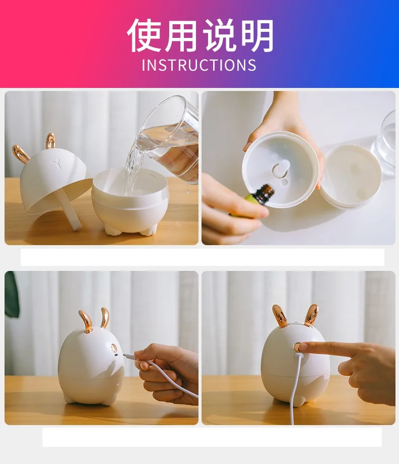 Особенности: Нанораспыление для очистки воздуха и увлажнения кожи. Новые обновления и большие спреи. Прекратите сухое горение и низкий уровень шума, тихая компания. Уменьшает высыхание воздуха и эффективно останавливает бактерии. Нанометровые частицы воды проникают в кожу, увлажняя кожу. Маленький размер, не имеет места, в любое время в любом месте для удовлетворения различных сценариев. Технические характеристики: Тип товара: увлажнитель воздуха Тип выбора: белый, розовый (по желанию) Внешний вид: олень, кролик (по желанию) Материал: АБС-пластик Номинальное напряжение: DC5V/1A Номинальная мощность: 2 Вт Рабочий ток: 250-400mA Уровень шума: 10 ~ 15 дБ Ёмкость: 320 мл Объем распыления: 30-50 мл/ч Входной интерфейс: интерфейс USB Вес посылка: 175 г/6,17 унций Размер посылка: 140*90*90 мм/5,51*3,54*3,54 дюймов Посылка список: 1 * главной машины 1 * ватные тампоны 1 * USB кабель для зарядки 1 * Руководство пользователя