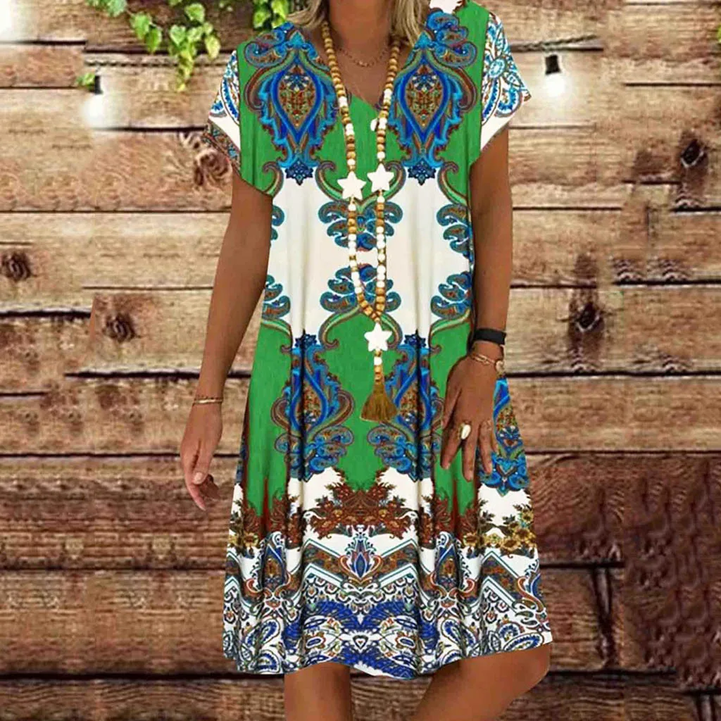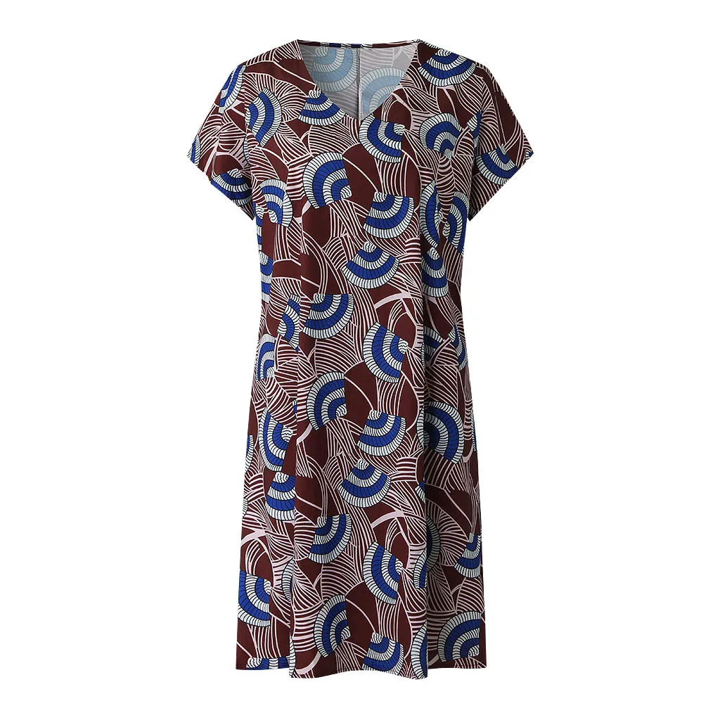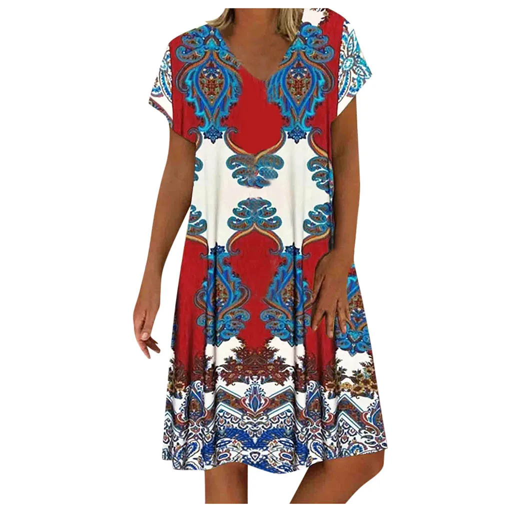 Женское винтажное повседневное летнее платье с цветочным принтом и v-образным вырезом с коротким рукавом мини-платье