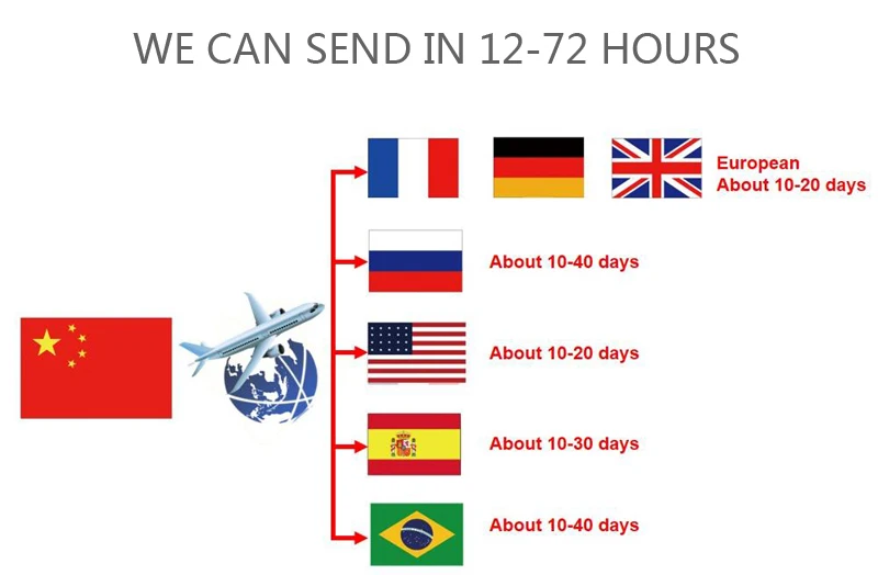 Вся посылка будет отправлена с номером отслеживания в течение 1-2 рабочих дней (короткое время обработки и бесплатная доставка), ePacket и China post air mail-это наш сервис по умолчанию, пожалуйста, свяжитесь с нами, если вы хотите получить expers. Примечание:-пожалуйста, убедитесь, что ваш адрес правильный или полный, прежде чем разместить заказ;-Ожидаемая дата доставки будет зависеть от таможни, погоды и т. Д., иногда может потребоваться немного больше времени, чтобы получить посылка, пожалуйста, свяжитесь с нами, чтобы продлить время защиты вашего заказа;