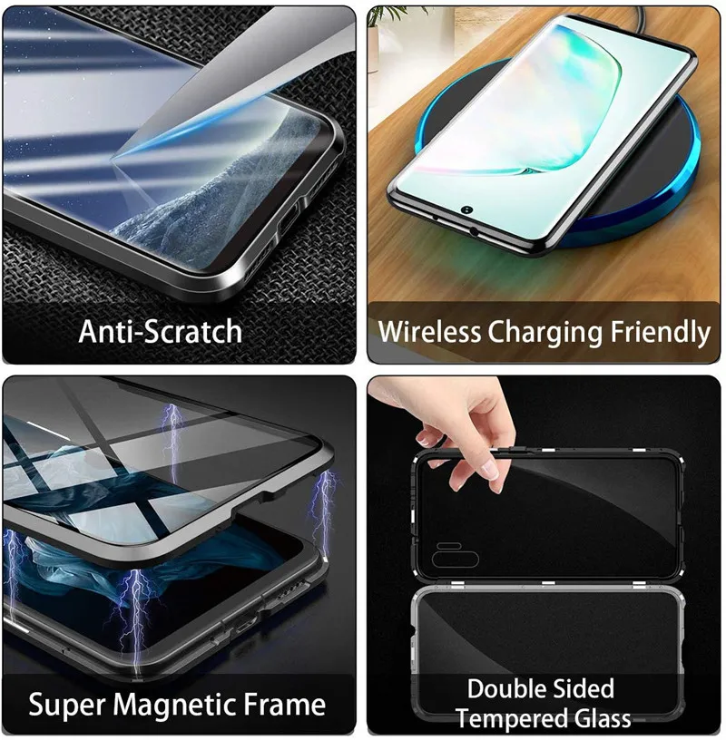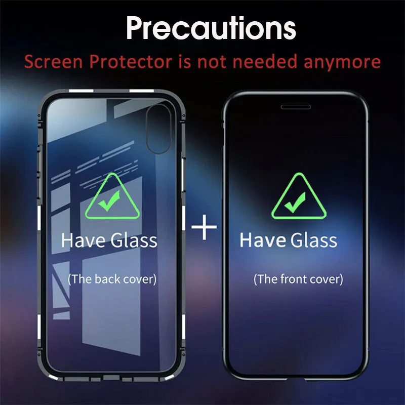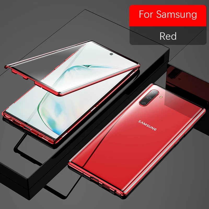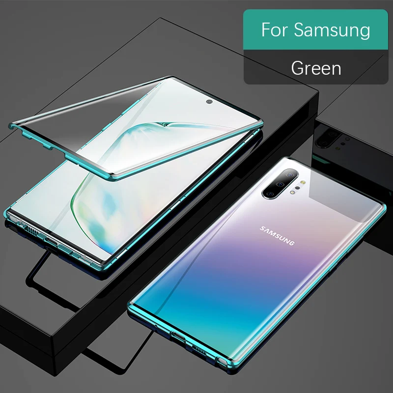 Двухстороннее стекло (спереди + сзади)Металлический магнитный чехол для Samsung