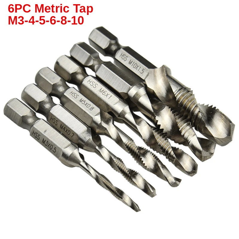六角柄钻攻一体复合丝攻丝锥钻头 螺旋机用丝锥公制高速钢 6 шт.