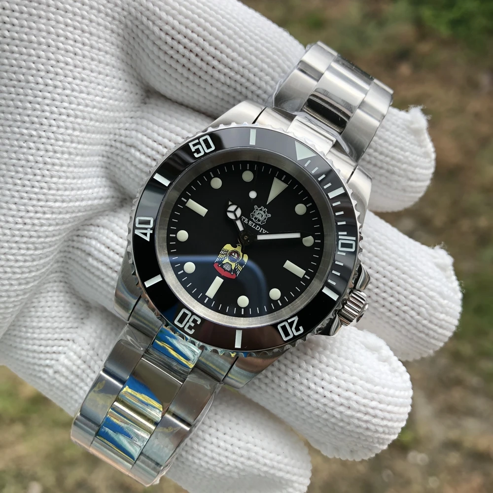 Тип движения: полностью автоматический механический механизм (двухсторонняя Автоматическая обмотка) Модель движения: Япония NH35 Характеристики движения: 3 стрелки/календарь, 21600 раз в час (3 Гц), Устройство остановки, двусторонняя Автоматическая обмотка, 24 камня, 41 час Аккумулирования энергии. Чехол Материал: 316L нержавеющая сталь Чехол: шлифовка + полировка Материал нижней крышки: нержавеющая сталь 316L Тип нижней крышки: Винтовая сплошная Нижняя крышка Чехол диаметр: 41 мм (без головки) Чехол длина: 48 мм (общая длина от верха до низа) Толщина корпуса: 13,5 мм (в том числе настольное зеркало и нижняя крышка) Чехол для ушей: 20 мм (положение, в котором подключен чехол и ремешок) Вес головы: 76 г (без ремешка) Вес всего стола: 166 г (включая ремешок из нержавеющей стали) Длина Часов: 250 мм (длина часов/окружность) Материал ремешка: нержавеющая сталь Материал зеркала: Синтетический сапфир Тип настольного зеркала: плоский сапфир Настольное зеркальное покрытие: синее покрытие Настольное зеркало Размер: 30,5*2,5 мм (диаметр * толщина) Тип головки: винтовой рычаг блокировки Размер головки: 7 мм (диаметр) Материал перегородки: керамическое кольцо Функция перегородки: 120 зубчатое кольцо одностороннее вращение Светящийся ободок: 240000/кг Swiss BGW9 супер светящийся порошок, синий Светильник Размер оправы: 38,0*30,6*1,6 мм (внешний диаметр * внутренний диаметр * толщина) Цвет поверхности: матовый черный Яркость поверхности: 240000/кг Швейцарский C3 Супер светящийся порошок, светящийся зеленый Размер поверхности: 31,25*29,5*27,5*0,4 мм (линия отверстия * конец лица диаметр * Поверхность отверстия * толщина) Ручная работа: очень яркий цветок партии Световой указатель часов: 240000/кг Швейцарский C3 Супер Яркий порошок, светящийся зеленый Размер руки: 8*12*12 мм (часовая стрелка * минутная рука * секундная длина) Водонепроницаемость: 200 метров Водонепроницаемый/дайвинг [можно мыть руки, плавать, Дайвинг, подходит для всех ежедневных водонепроницаемых целей] Выпускной клапан: нет Гарантийный срок: три года бесплатной гарантии Стандарт упаковки: профессиональная Водонепроницаемая пластиковая упаковка