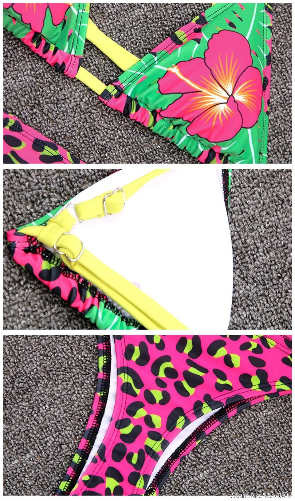 Пикантное Бандажное бикини с принтом в стиле пэчворк 2018 женский купальник пуш ап