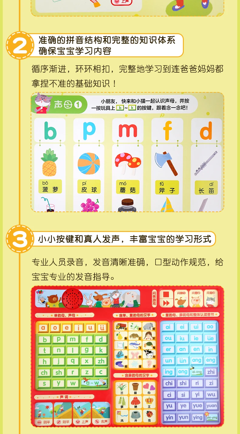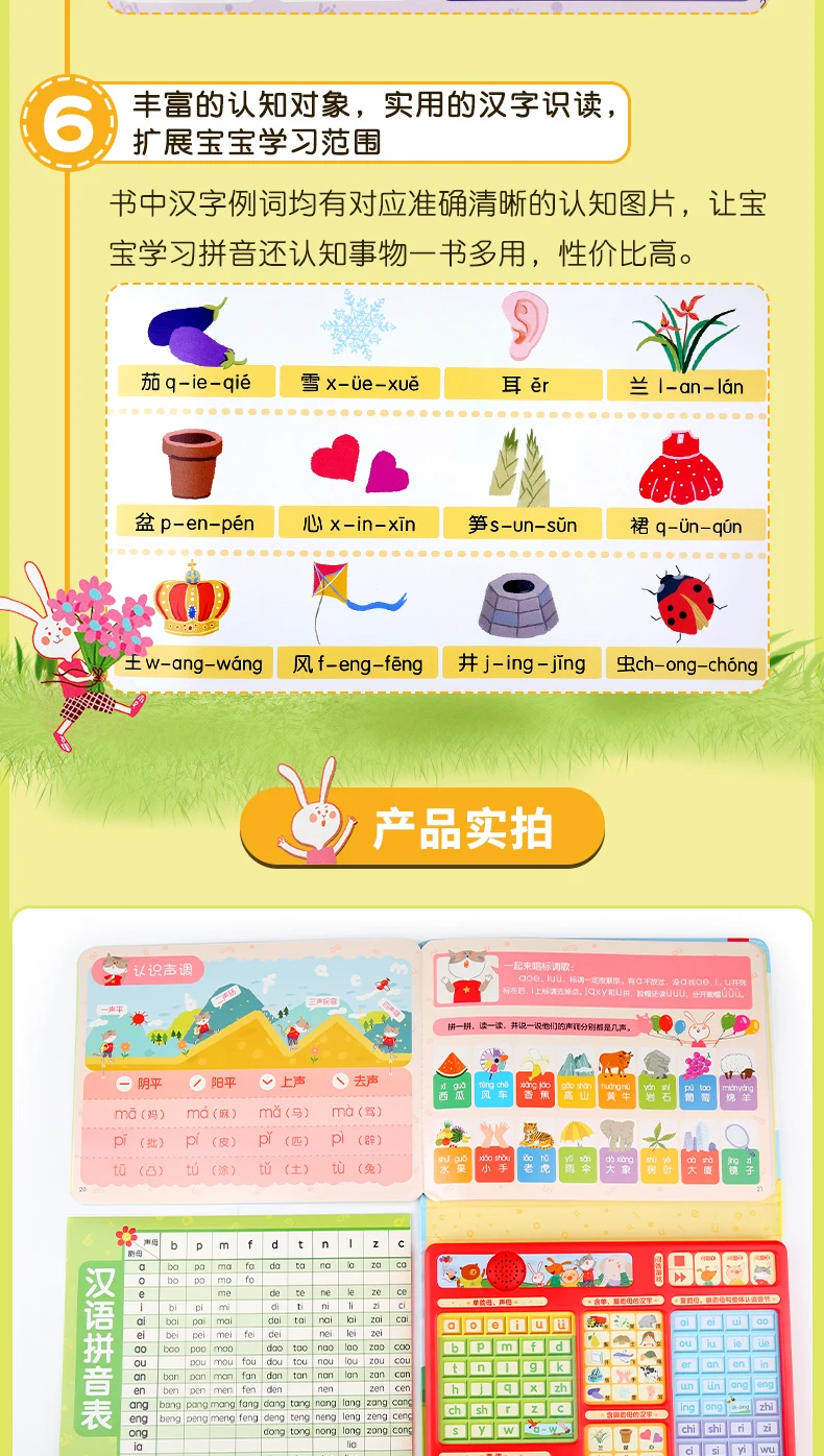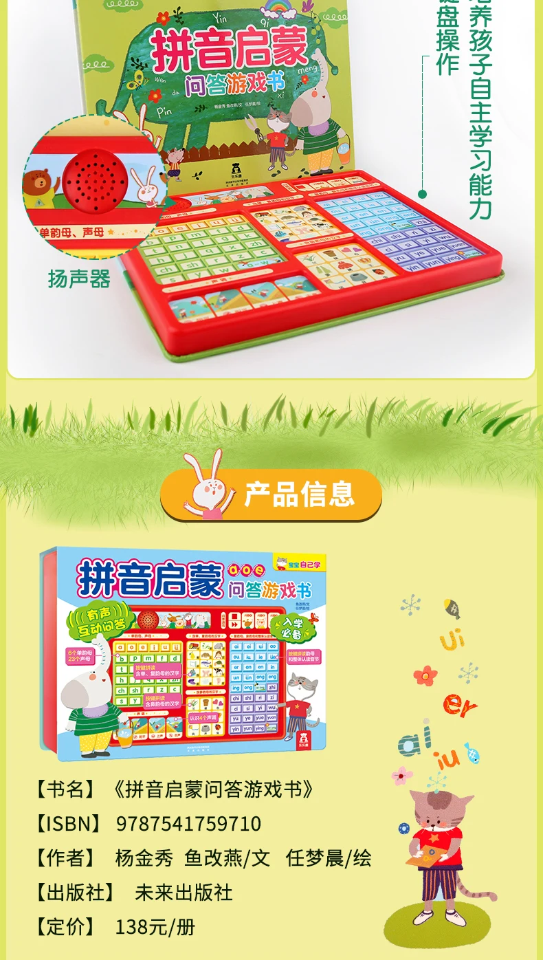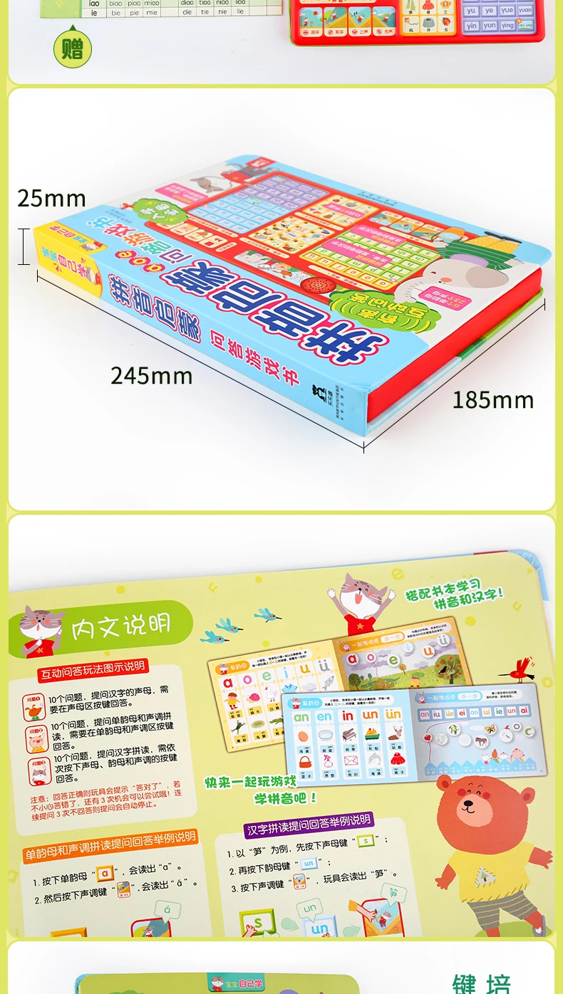 Пиньинь орфография обучение просветление Викторина игра книга 0-3-6 лет ребенок точка чтения Аудио Книга аудиокнига