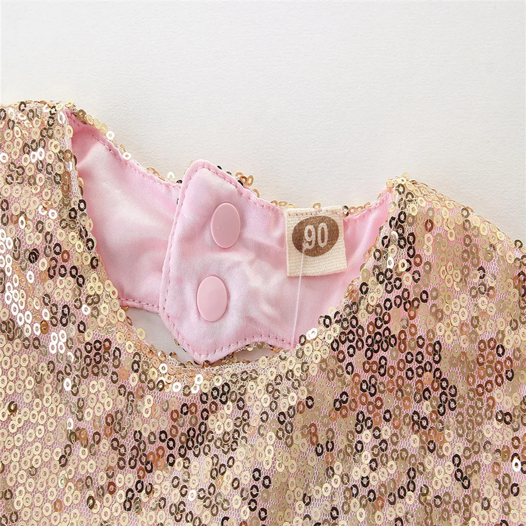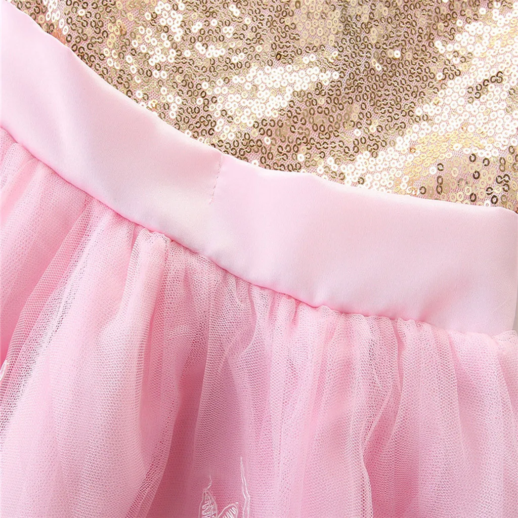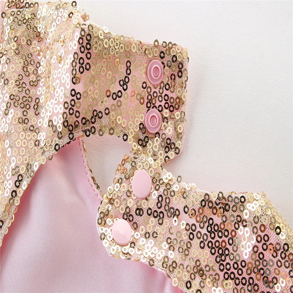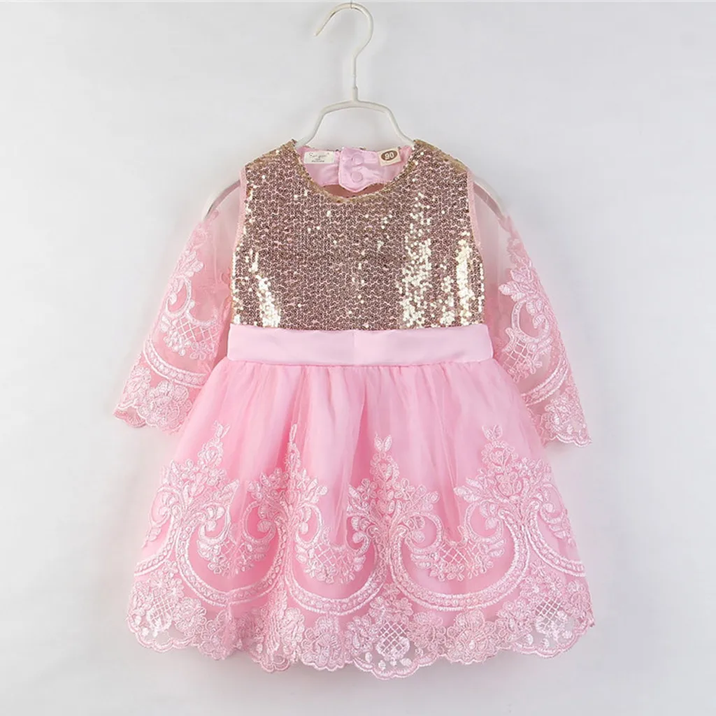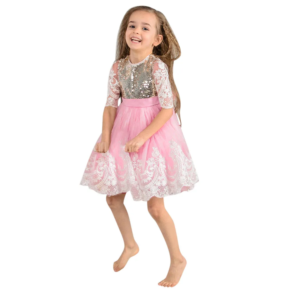 Модные платья для девочек, платье принцессы с кружевными рукавами и блестками, с бантом, розовая элегантная Милая одежда для малышей, 50 *