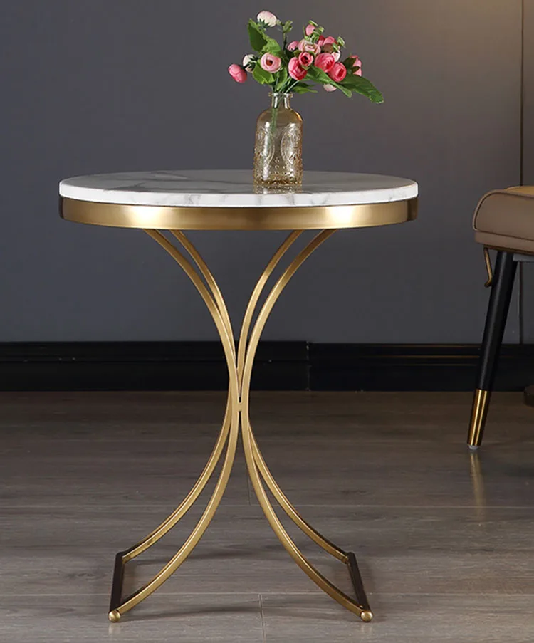 Современный Мраморный верхний боковой стол для дивана-кровати, маленький круглый журнальный столик из нержавеющей стали, позолоченная рама