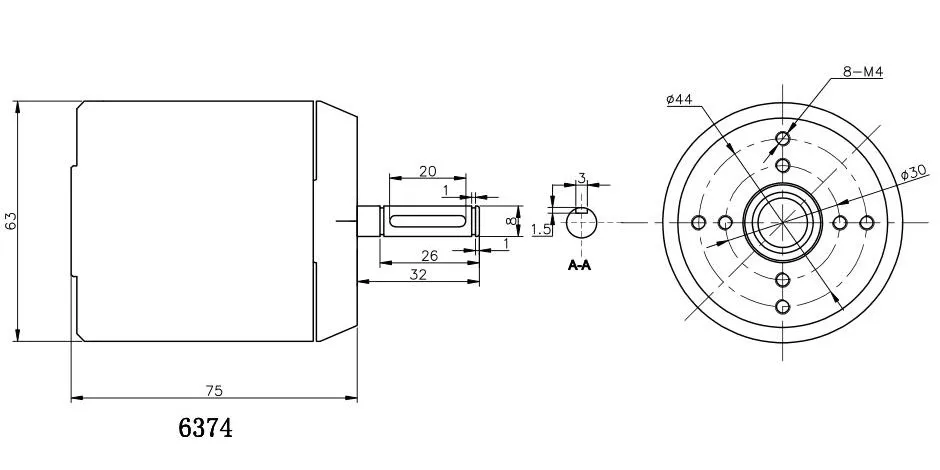 Вал: диаметр 8 мм, 30 мм длина, 3x3x20 мм Слот для ключей.
