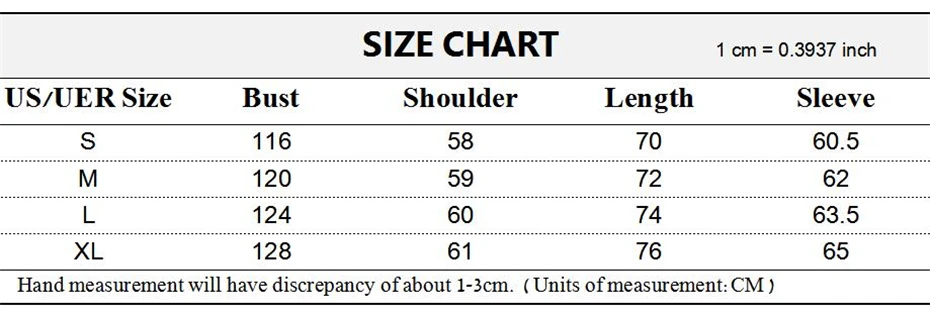 1. Эта Таблица размеров предназначена только для справки. Допускается погрешность в 1-3 см для измерения вручную.