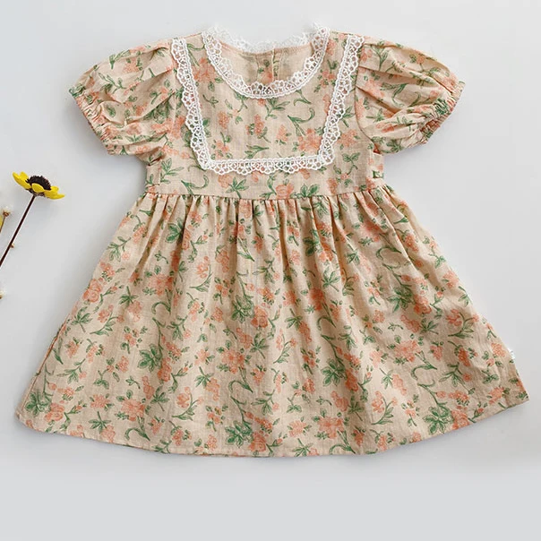 Мягкое дышащее платье для новорожденных; Летние Детские платья с короткими рукавами и цветочным рисунком для маленьких девочек; Комплект одежды; Комбинезоны для малышей; Детская одежда