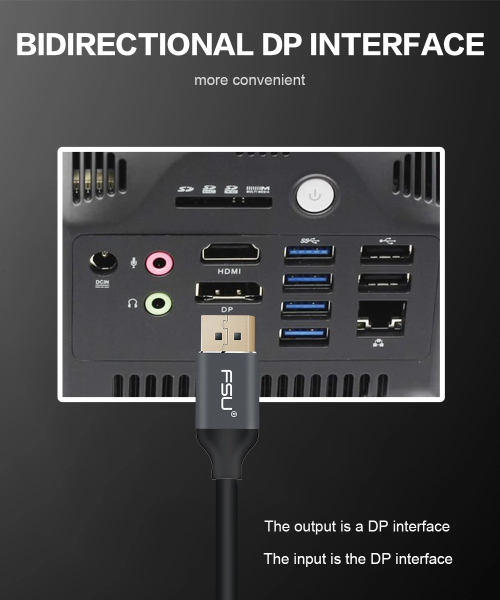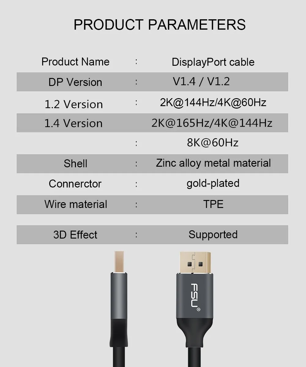 Кабель DisplayPort версии 1,4, разрешение до 8K @ 60 Гц, 4K @ 144 Гц, 2K @ 165 Гц.