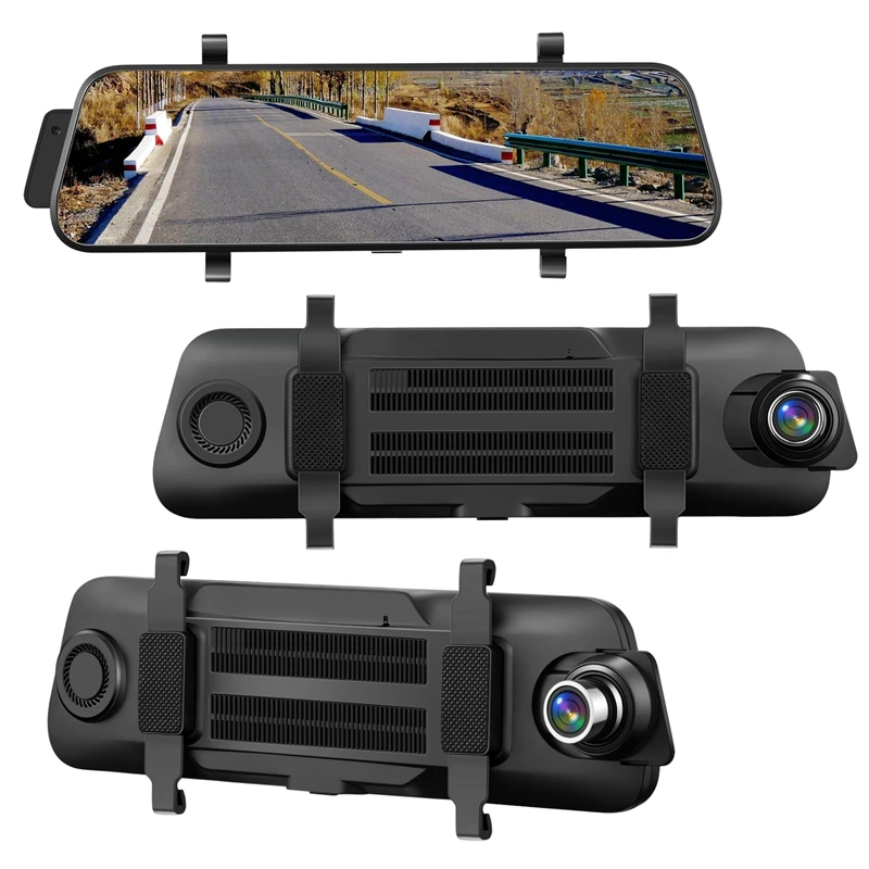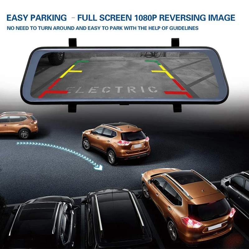 1080P front camera &9.66 Inch Big streaming media Press Sn 1080P 9.66 inch streaming media rearview mirror features a Full HD IPS touchsn allows you to see more traffic information.1080P front camera records highest quality videos day and night. With an 170° ultra-wide lens to cover the entire road ahead and capture all the critical details like license plates, signposts etc.