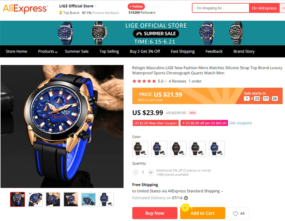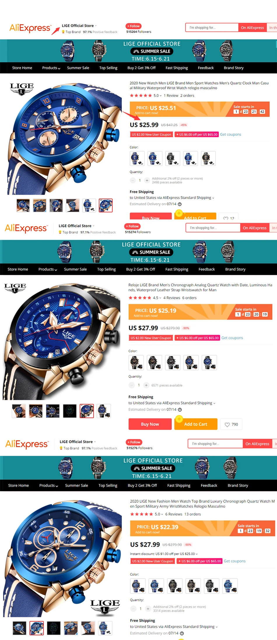 Магазина LIGE overseas chain Store работает с 06.01.2020. его рейтинг составлет 88.11 баллов из 100. В избранное добавили 24763 покупателя. Средний рейтинг торваров продавца 4.5 в продаже представленно 495 наименований товаров, успешно доставлено 3354 заказов. 1977 покупателей оставили отзывы о продавце.