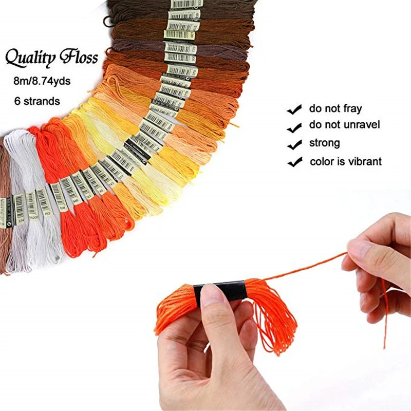 Название: нить для вышивки крестом (смешивание цветов не повторяется) Характеристики: 8 метров 6 акций Материал: полиэфирная хлопковая нить Вес: Один 2,5 г Упаковка: OPP пакет упаковка