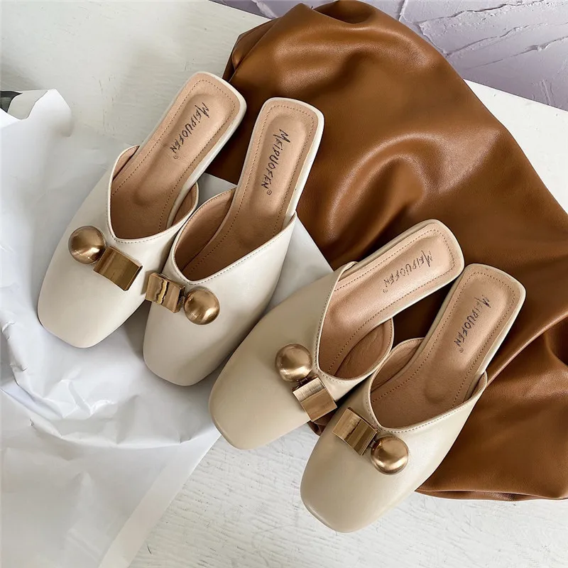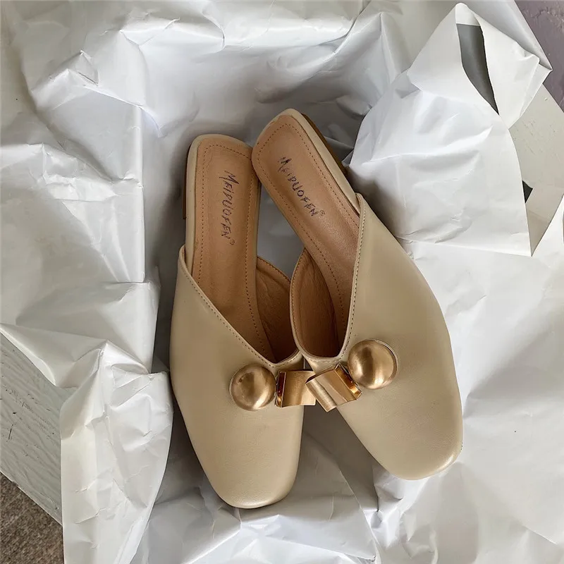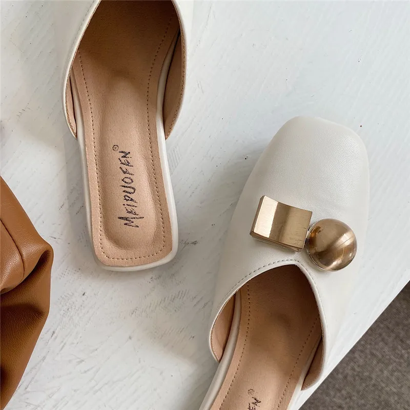 Шлёпанцы женская обувь с острым закрытым носком летние шлепанцы тонкий каблук