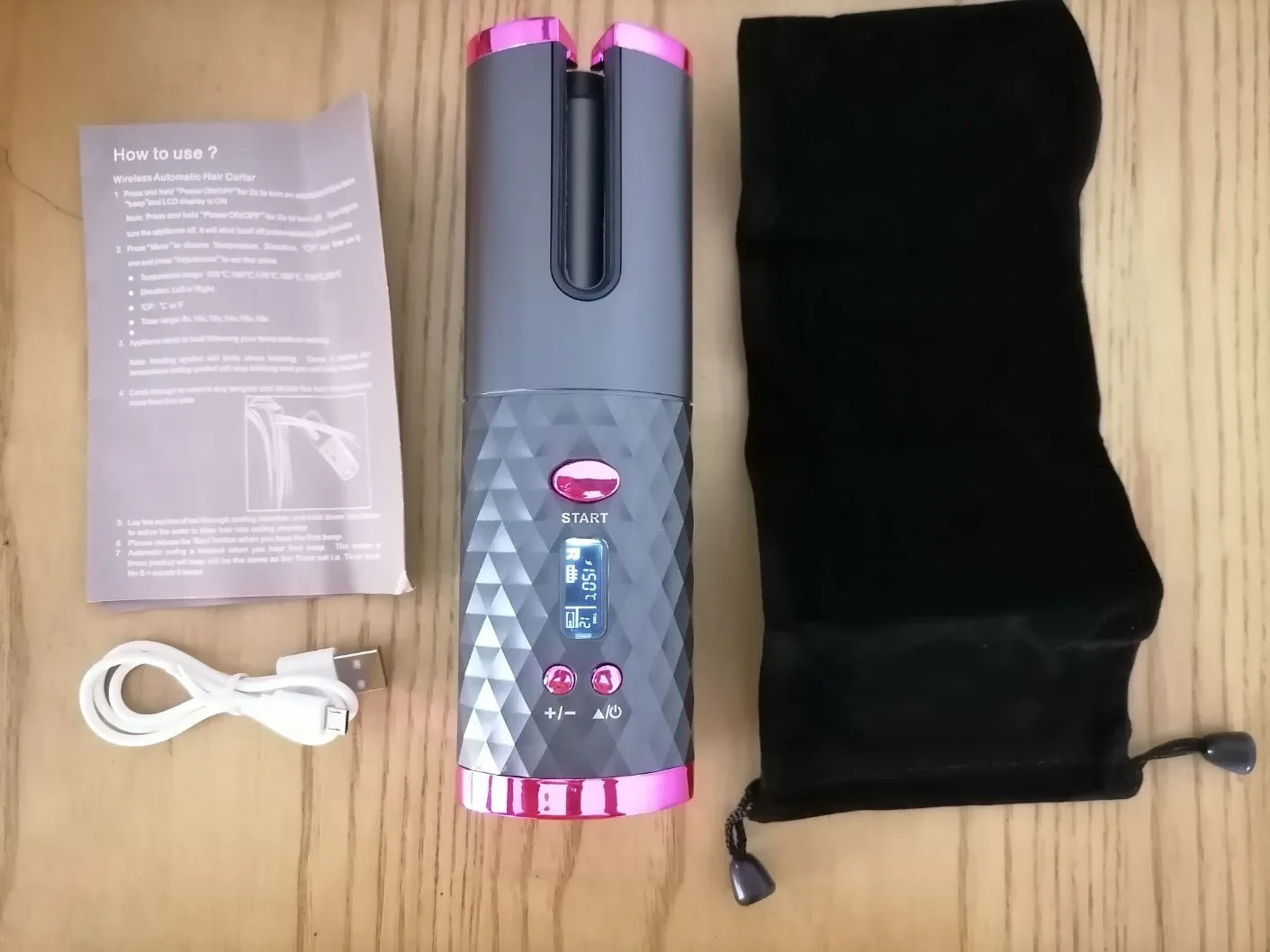 Беспроводной бигуди для волос Автоматическая Плойка для завивки керамический Вращающийся беспроводной USB Перезаряжаемый таймер ЖК-цифровой инструмент для укладки волос Характеристика: 【Fast heating】профессиональный турмалиновый керамический бочонок, быстро нагревается и дает вам гладкий, массивный блеск и локоны без всех повреждений. 【Жк-дисплей 】 большой светодиодный дисплей обеспечивает четкую температуру, направление и таймер, он обеспечивает более читаемое и удобное использование. 【Efficient & safe】наши бигуди можно быстро нагревать и его беспроводной дизайн может максимизировать эффективность моделирования. Он оснащен безопасным и нетоксичным изоляционным материалом внутри плойки, который может защитить вас от ожогов при использовании. 【 Регулировка температуры/таймера/направления: 150-200 ℃ выбор температуры, 8-18s Авто щипцы для завивки, а также направление завивки (слева и справа) вместе позволяют легко образовывать идеальные свободные или тугие локоны, экономя много времени. 【USB аккумулятор и зарядное устройство 】 встроенный литий-ионный аккумулятор емкостью 2500 мАч обеспечивает супер удобное беспроводное использование. Между тем он также может быть использован в качестве банка питания. 【Простота в использовании и портативность ствол автоматически вращается вокруг и обертывает секцию волос в камеру для завивки. Легко носить с собой во время путешествий, можно завивать волосы в любое время и в любом месте, вдали от неприятностей с линией. Спецификация: Емкость аккумулятора: 2500 мАч Батарея напряжение: 3,7 V Батарея Ватт час: 9.25Wh Тип батареи: литий-ионный аккумулятор Время зарядки: 3,5 часов Время использования: Непрерывное использование времени около 40 минут Температурная передача: 6(150 ℃ 160 ℃ 170 ℃ 180 ℃ 190 ℃ 200 ℃ Длина USB: 58 ± 5 см Размер изделия: 19x5.6x4.9 см Посылка: 1 х Основное устройство 1 х сумка для хранения 1 х Руководство