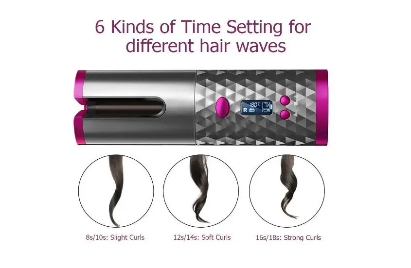 Беспроводная Автоматическая Плойка для волос, беспроводная Плойка для завивки, USB перезаряжаемая воздушная Плойка для Кудрей, волн, ЖК-дисплей, керамические кудрявые
