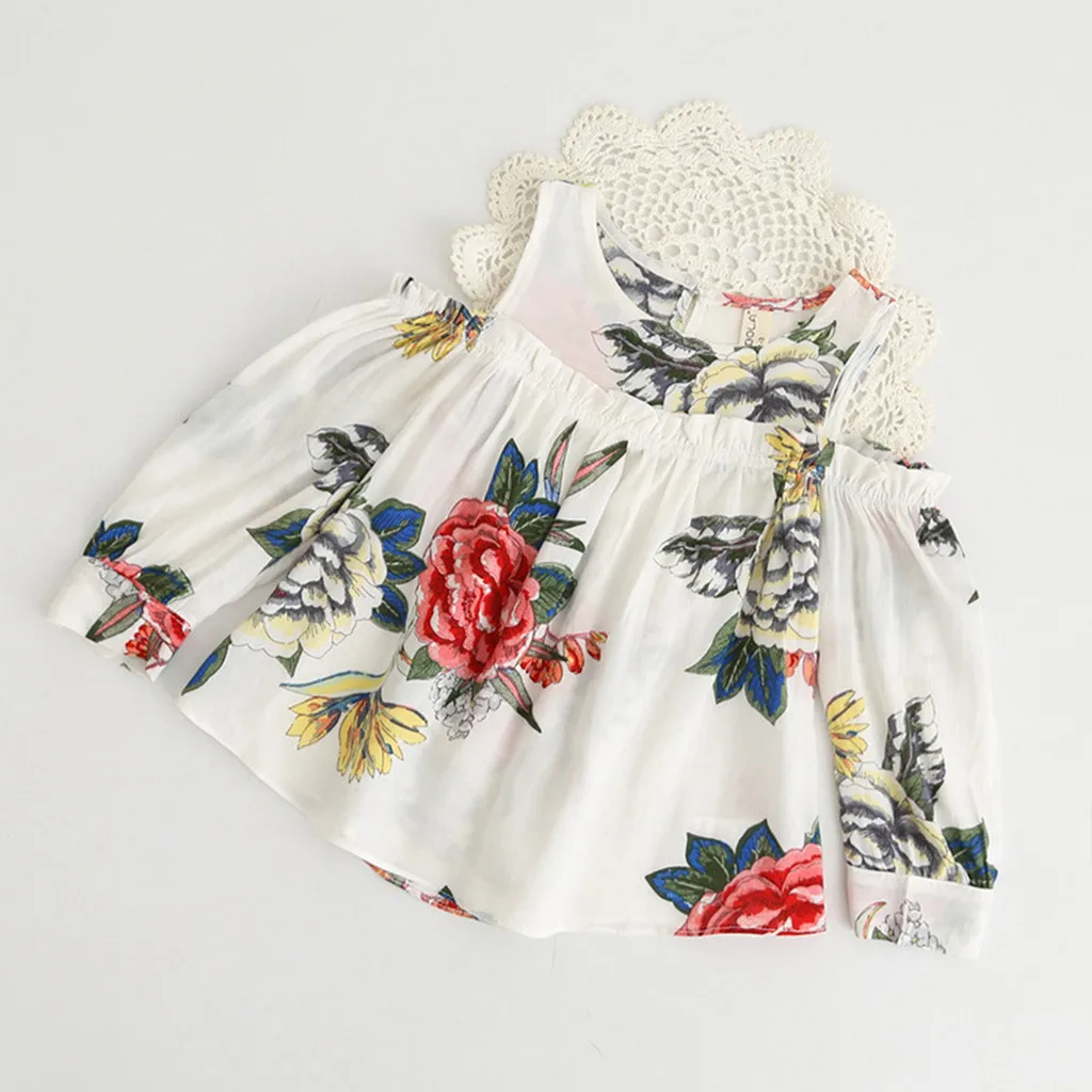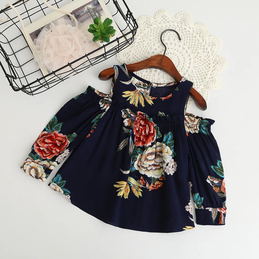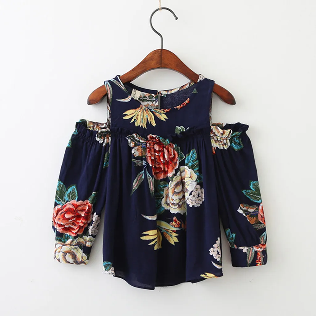 (От 2 до 7 лет) футболка в Корейском стиле для девочек летняя рубашка с открытыми плечами и цветочным принтом новая модная одежда футболка 50 *
