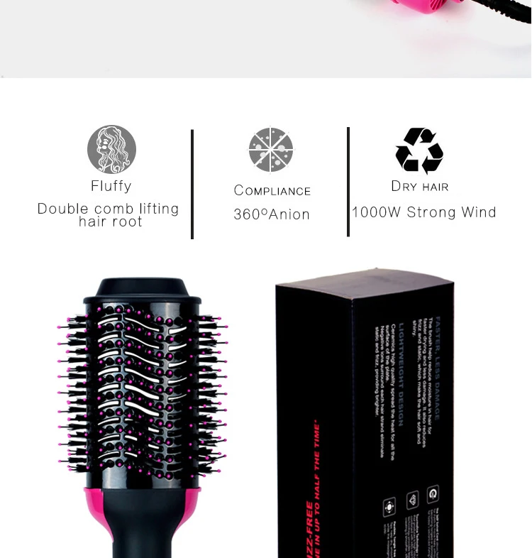 Название продукта: щетка для горячего воздуха 3 в 1, щетка для сушки волос, одношаговый испаритель, выпрямитель для завивки волос, профессиональные щипцы для завивки волос, стайлер, расческа Номинальное напряжение: ЕС, Великобритания, Австралия: 220 В/США: 110 В Номинальная мощность: 1000 Вт Номинальная частота: 50/60 Гц Количество передач: 3 Нагревательный Материал: Новый Глубокий V волновой нагревательный провод Дисплей Тип: светодиодный Кабель питания: 2 метра Дизайн гребня: несъемный Вес изделия: 668 г (включая упаковку) Размеры посылка: 300*100*80 мм (Д * Ш * В)