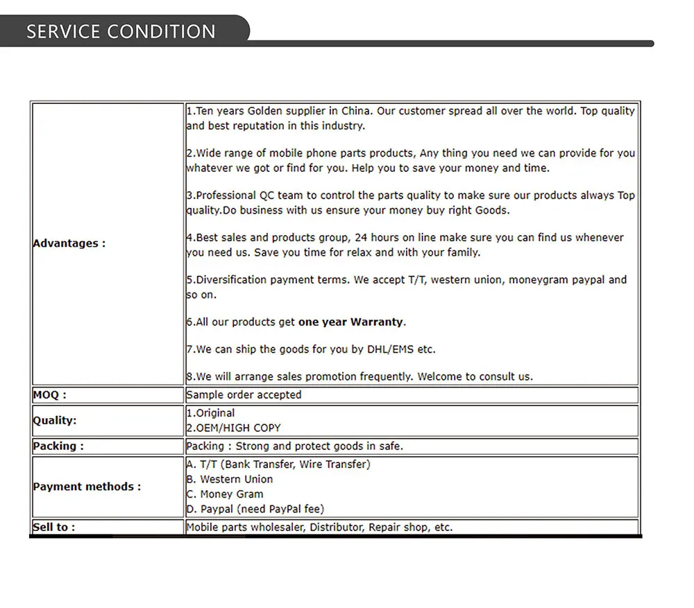Внимание: Пожалуйста, не устанавливайте продукт сразу после получения товара. Пожалуйста, сначала проверьте продукт, и если есть проблема, свяжитесь с продавцом вовремя. Если покупатель уже установил товар после отзывы, продавец не возьмет на себя ответственность за товар. Когда вы делаете заказ, если вы можете «Добавить в корзину» или «Добавить в список желаний» или «следовать» нам, ваш заказ будет отправлен быстрее. 1. Пожалуйста, свяжитесь с нами, если вы хотите крупные заказы, мы можем дать вам скидку. 2. Мы можем помочь вам найти нужные вам товары на оптовом рынке, и, пожалуйста, отправьте нам подробный список.