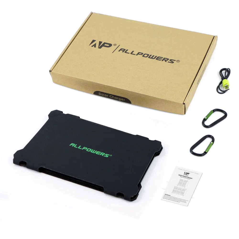 * Зарядное устройство для солнечной панели 1x21 Вт * 1x micro USB кабель для зарядки (бесплатный подарок) * 1x Руководство пользователя * 2x карабины (бесплатный подарок) * 1x Экологичная посылка * 1x18 месяцев гарантии и беспроблемное обслуживание клиентов