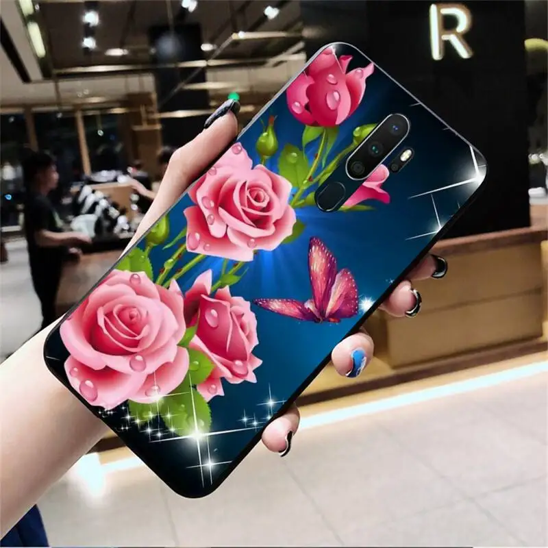 Мягкий чехол для телефона с красной бабочкой и розами на заказ Oppo A5 A9 2020 Reno2 z Renoace