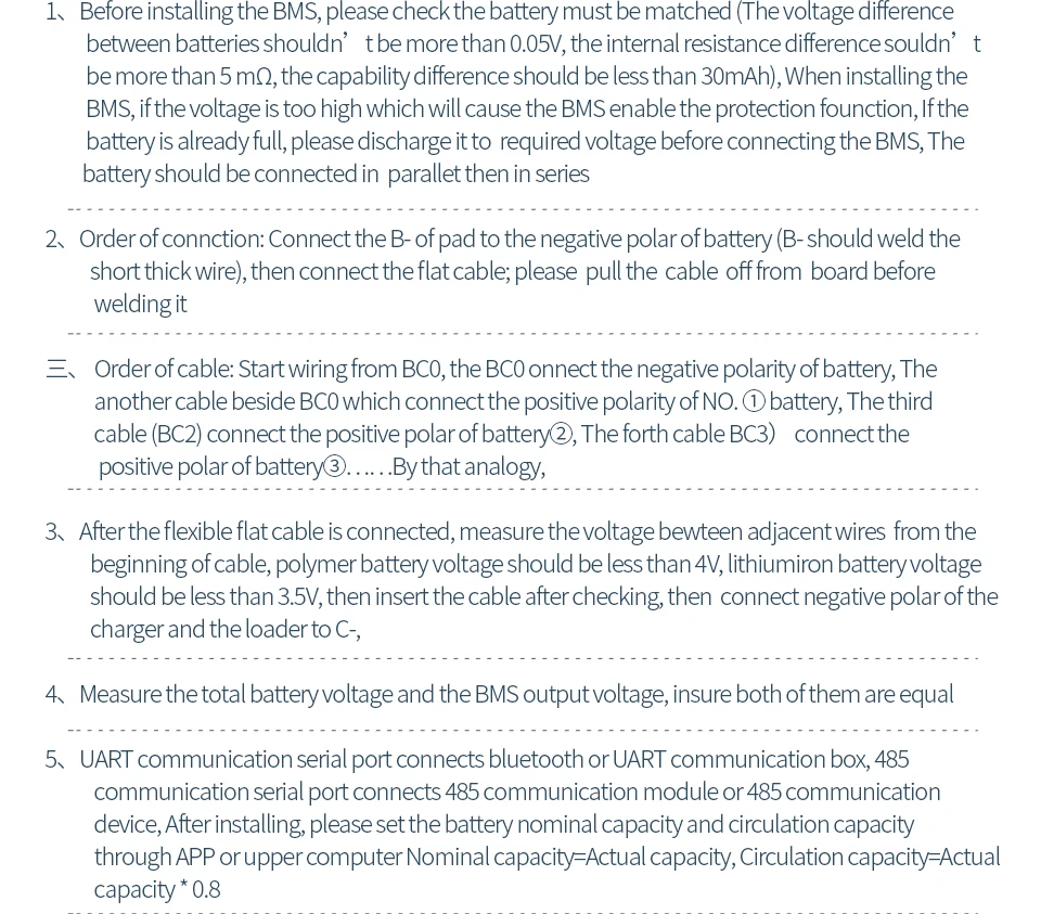 1. Если вам нужно подключить ваш мобильный телефон, вам нужно купить BMS с коммуникационная плата интерфейса UART порт или UART/485 двойной порт связи, а затем добавить модуль bluetooth.