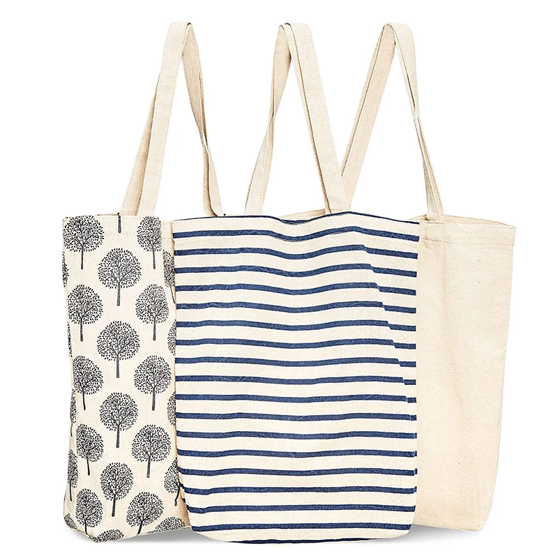 * Мешки для продуктов из хлопка: включает 3 многоразовые мешки для продуктов из хлопка с ручками в следующих темах: темно-синие полоски, деревья и пустые. Минимизируйте использование пластиковых пакетов с помощью этих прочных хлопковых мешков!