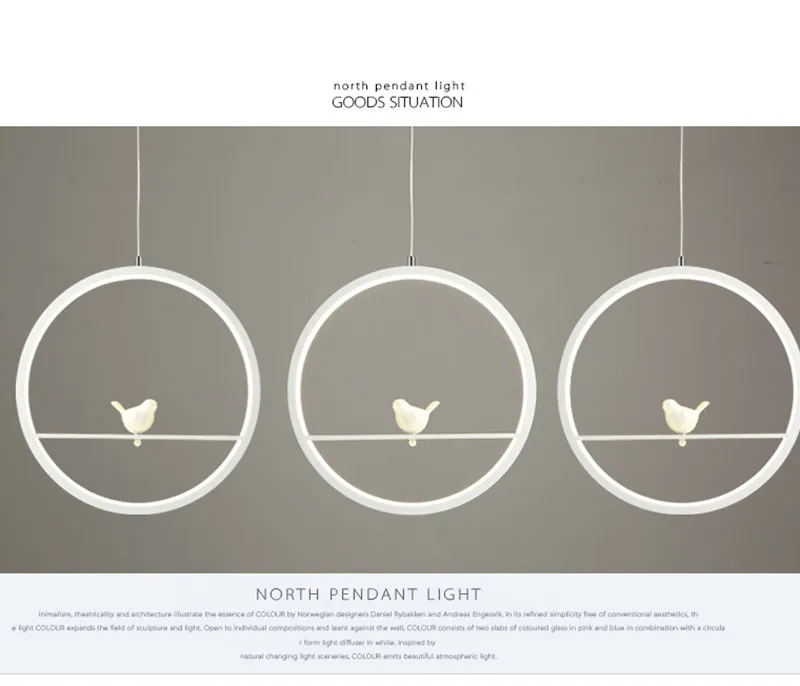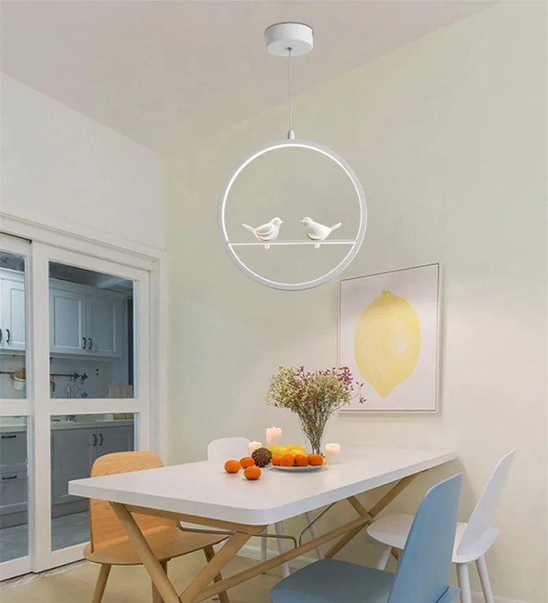 Скандинавский Креативный светодиодный светильник с птицей, люстра, люстра для столовой, 90-260 В, кольцо для украшения дома, новинка, подвесные светильники для птиц