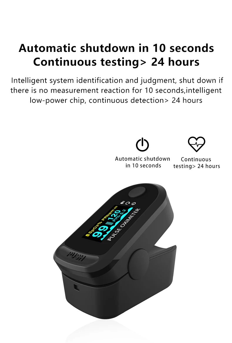 Название: оксиметр Bluetooth Экран дисплея: oled-цифровой дисплей Диапазон измерения Spo2: 70-100% Измерение SpO2 + 2%(70-100%) Точность. Меньше чем 70% неопределенных Диапазон измерения PR: 25,250 BPM Точность: ± 2% или 2BPM Рассеивание мощности: ниже 30 мА батареи Характеристики: две батарейки AAA Размер: 58*32*34 мм 1. Оксиметр поддерживает соединение Bluetooth, и приложение можно скачать бесплатно в google paly и IOS 2. Приложение может устанавливать сигналы тревоги Spo2 и PR, записывать данные измерений и делиться ими 3. Продукт имеет цветной дисплей, и интерфейс может отображать шесть различных режимов отображения. 4. Потребление энергии продукта низкое, и две батарейки AAA могут работать более 40 часов. 5. Имеется Предупреждение о низком напряжении, когда напряжение батареи слишком низкое, что может повлиять на нормальное использование. 6. Когда сигнал не генерируется, продукт войдет в режим ожидания через 10 секунд. Маленький размер, светильник вес, легко носить с собой. Список товаров: Оксиметр * 1 Ремешок * 1 Руководство на английском языке * 1 (включая процесс ссылки на приложение)