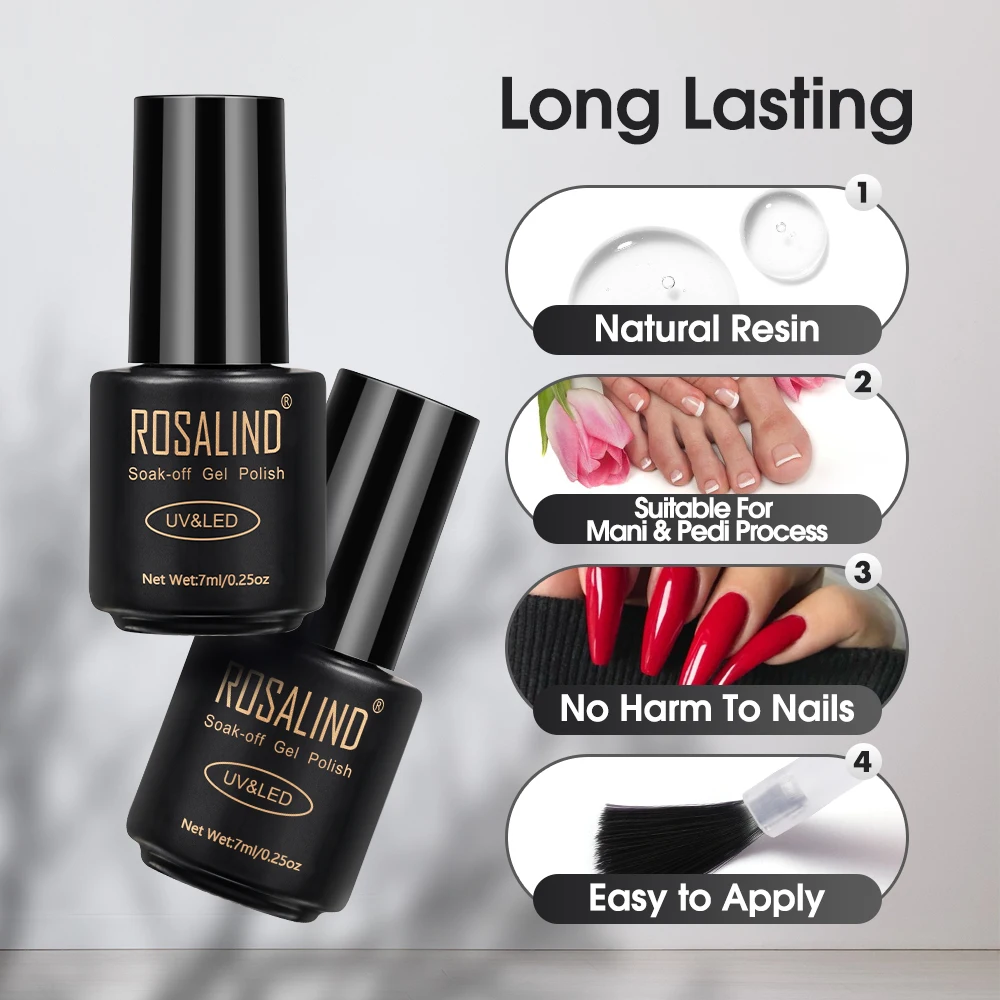 ROSALIND 7 мл отмачиваемый гель для ногтей Блестящий яркий для дизайна ногтей светодиодный/УФ-лампа