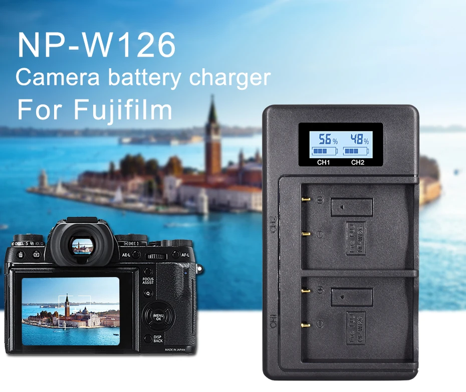 Совместимые модели: Для Fujifilm NP-W126 NP-W126s HS30EXR HS33EXR HS35EXR HS50EXR X100F X-PRO1 X-PRO2 X-A1 X-A2 X-A3 X-A10 X-E1 X-E2 X-E2S X-E3 X-M1 X-T1 X-T2 X-T10 X-T20 Посылка включает в себя: (в зависимости от выбранного Вами набора) 1x двойное зарядное устройство USB с ЖК-дисплеем 1x Munual