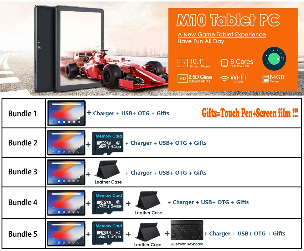 Восьмиядерный процессор + 6 ГБ ОЗУ 64 Гб ПЗУ + новая система Android 11.0 + WIFI 4G LTE сеть + 10 дюймов 1280*800 IPS экран + порт USB Type C