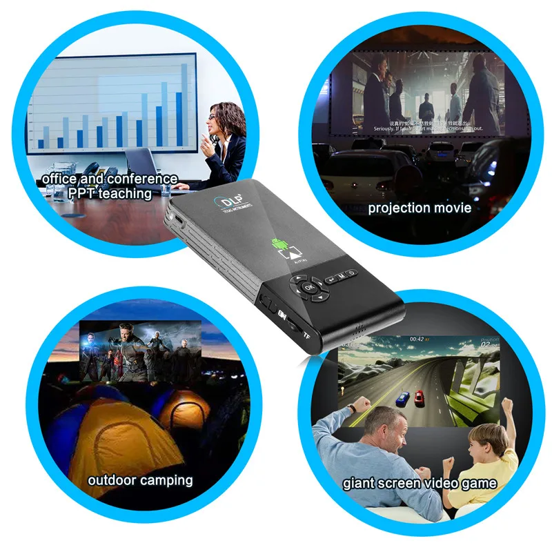 Системы Основная частота: Quad-core ARM Cortex-A7 Процессор с тактовой частотой до 1,2 ГГц Процессор: RK3128 Операционная система: Android 7,1 Пользователь lnterface: Android система lnterface стиль USB: хост USB 2,0 Bluetooth: BT 4,0 WiFi: 2,4G/5G WiFi(AP6330) Вспышка: поддержка вспышки 11,1 ---------------------------------------------------------------------------------------------------------------------------------------------------- Оптические параметры Контрастность: 2000:1 Ламо: светодиодный Lamo Срок службы лампы: 30000 часов Яркость: 2000 люмен Соотношение сторон: 4:3/16:9/16:10 Расстояние проекции: 1-5 м Размер проекционной крышки: 30-150 дюймов Разрешение: WVGA 854*480 поддержка 1080P ---------------------------------------------------------------------------------------------------------------------------------------------------- Другое оборудование Мощность параметры: 5V-2.5A DDR: 1 ГБ DDR3 Память: 32 ГБ Tf-карта: поддерживает емкость до 32 Гб Встроенный аккумулятор: встроенный аккумулятор 5000ма Аудиовыход: Поддержка аудиовыхода Пульт дистанционного управления: Поддержка ИК-пульта и беспроводного пульта 2,4G Расширение памяти: поддержка tf-карты и расширения мобильного жесткого диска ---------------------------------------------------------------------------------------------------------------------------------------------------- Интерфейс Lnputs: USB,IR, динамик HDMI IN(32G) ---------------------------------------------------------------------------------------------------------------------------------------------------- USB формат мультимедиа Аудио: MP3,WMA,MP2,OGG,AAC,M4A,MA4,FLAC,APE,3GP,WAV Изображение: поддерживает множество форматов изображений (jpg.png.bmp и т. Д.) Видео: H.263,H.264,H.265,VC-1,RV,VP6/ VP8,Sorenson Spark,MVC MPEG-1,MPEG-2,MPEG-4