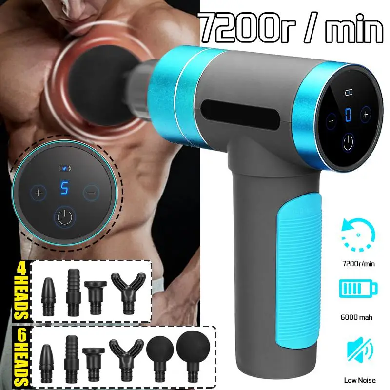 6 массажных головок 5 скоростей Регулировка ЖК-дисплея глубокий ударный Интеллектуальный массажный пистолет