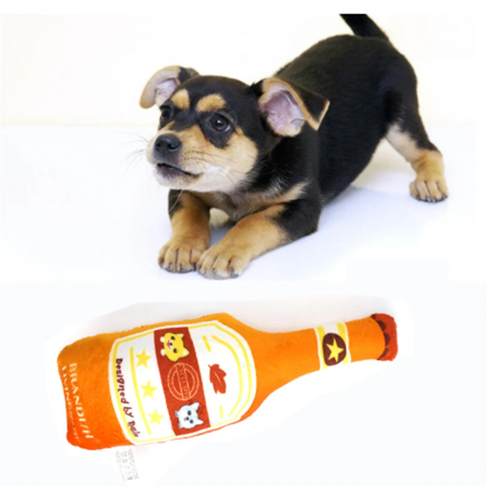 Пивная бутылка Форма собака игрушки для домашних животных пищалка, звуковая игрушка обучения домашних животных боковых зубов жевать Укус устойчивостью Щенок Плюшевые Интерактивная игрушка