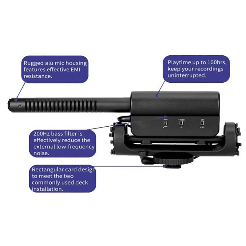 4. Функция пикапа в форме сердца с одной точкой может эффективно уменьшить шум окружающей среды, чтобы быть подобраны, 10 дБ повышение чувствительности и 60 Гц низкочастотное затухание; Удовлетворить общее использование в различных областях. Простая фиксация камеры с использованием стандартных универсальных спецификаций разъема