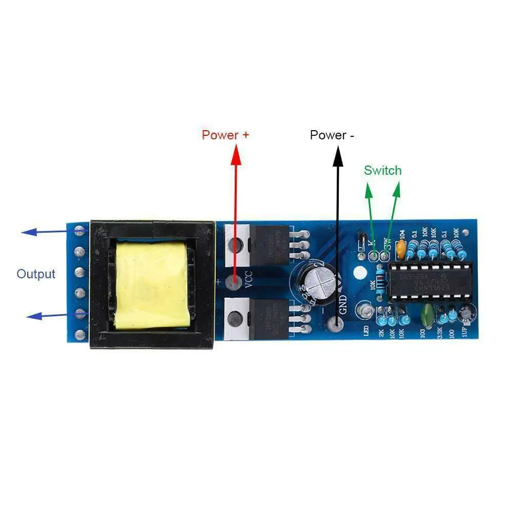 1. Плата высокочастотная квадратная волна переменного тока, поэтому она не может управлять общей индуктивной электрической техникой, такой как электромотор, электрический вентилятор, трансформатор катушки и т. д.