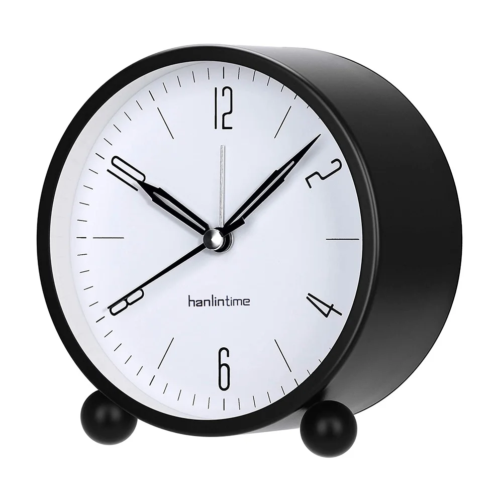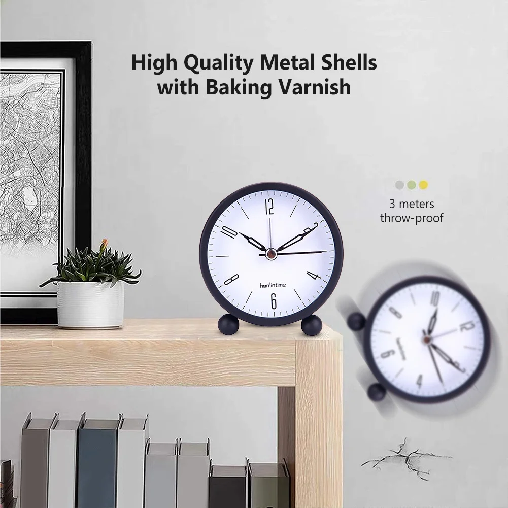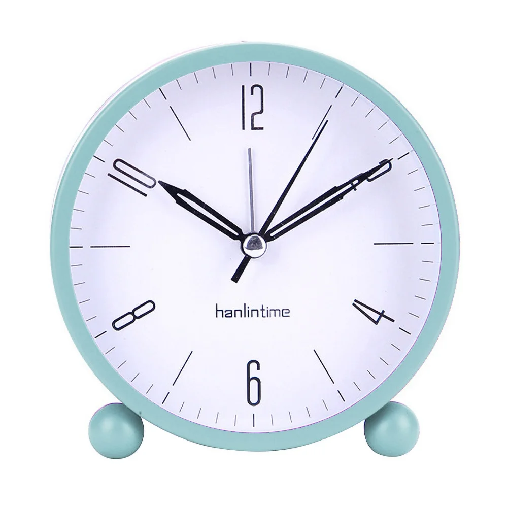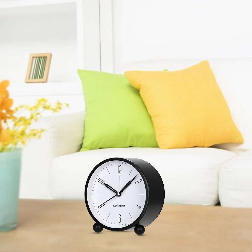 4-дюймовый металлический круглый будильник тихий Настольный батарея спальня работающий часы