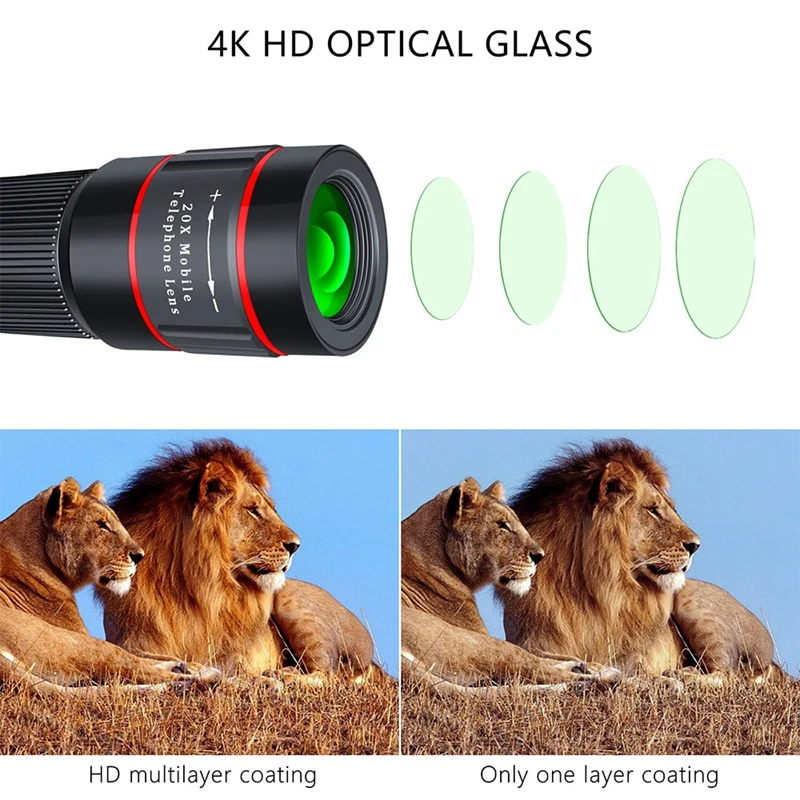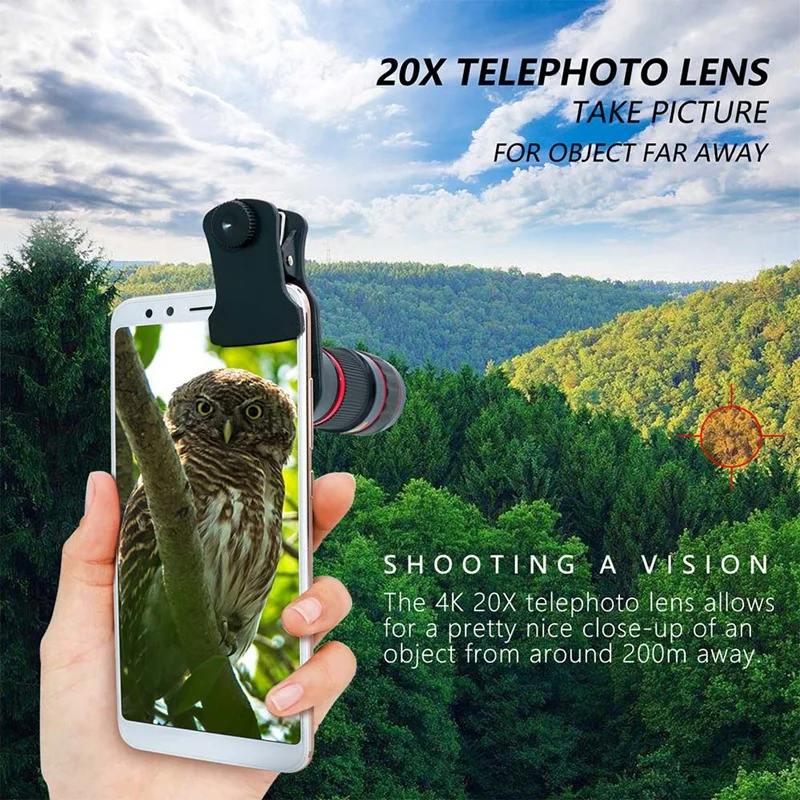[Портативный и многофункциональный] объектив с оптическим зумом 20X удобен для переноски в кармане. Идеально подходит для спортивных мероприятий, концертов, наблюдения за птицами, путешествий, кемпинга, рыбалки, наблюдения за животными, работы частного детектива, стрельбы на дальние расстояния. Он будет сопровождать вас, чтобы записать каждый прекрасный момент отдаленных пейзажей.